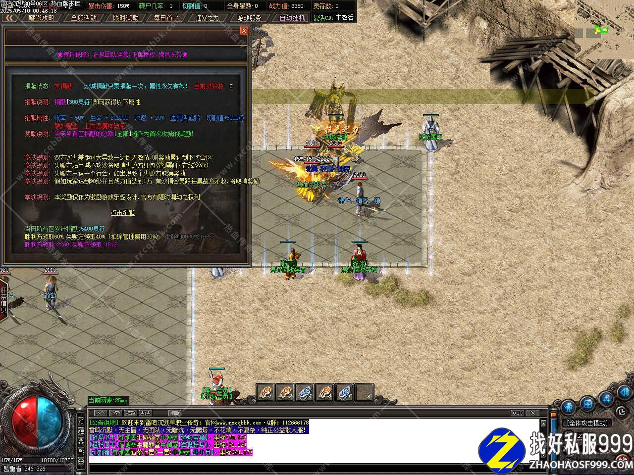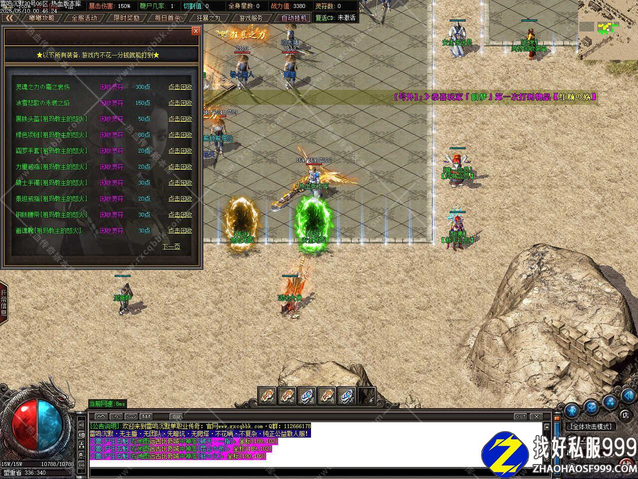 一、此服务端补有6.25GB,所有的PAK补丁全部一次加密,测试客户端为17周年纯净客户端,游戏兑换码:666666,版本带有假人,自动上线。