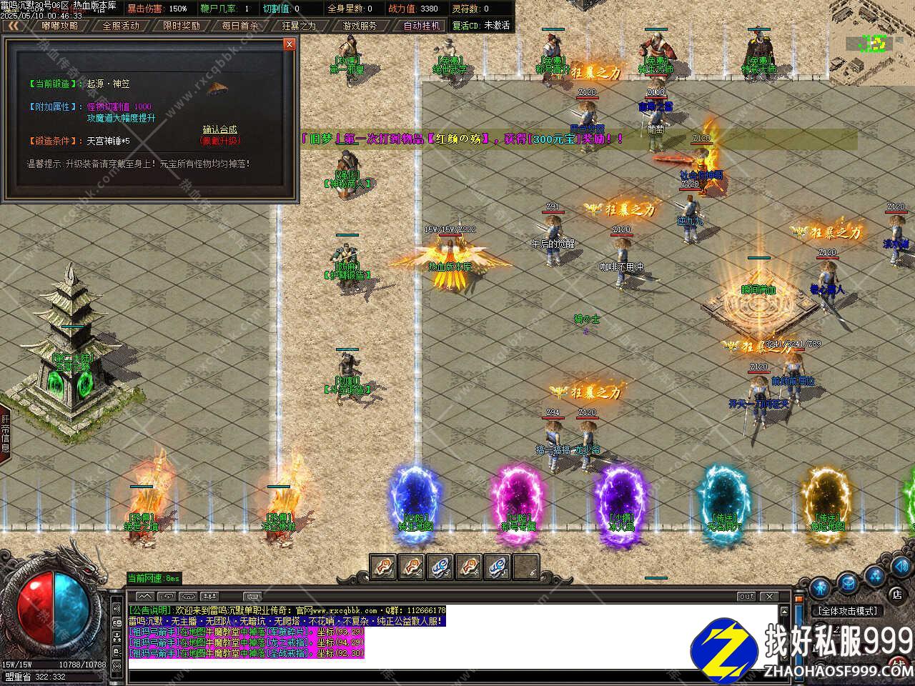 三、新增装备强化功能,每强化一级装备增加1-1点攻魔道,每件装备最高可强化至10星,全身达到70星以后更有厉害的属性加持。