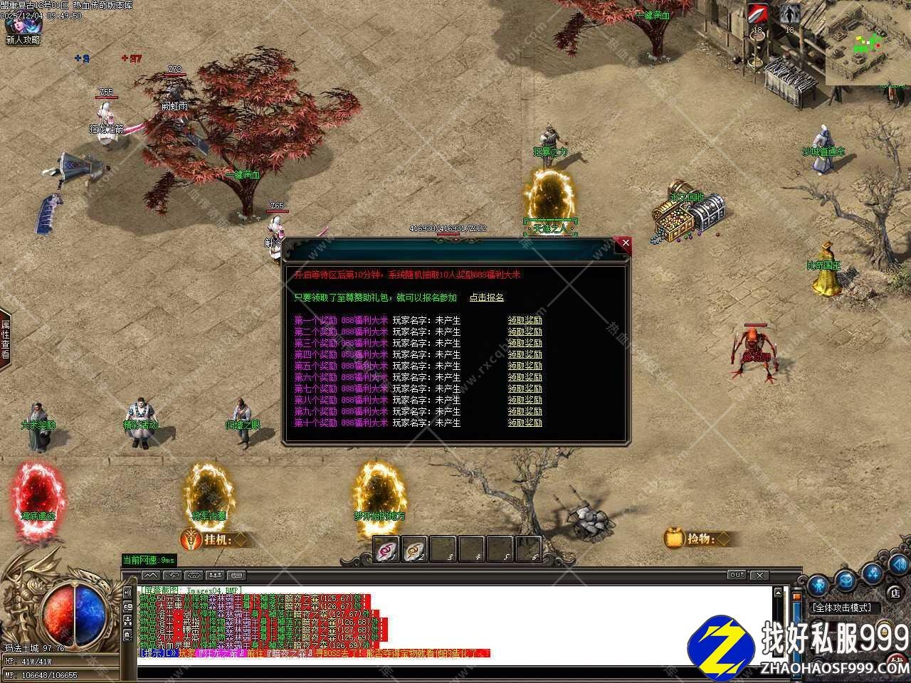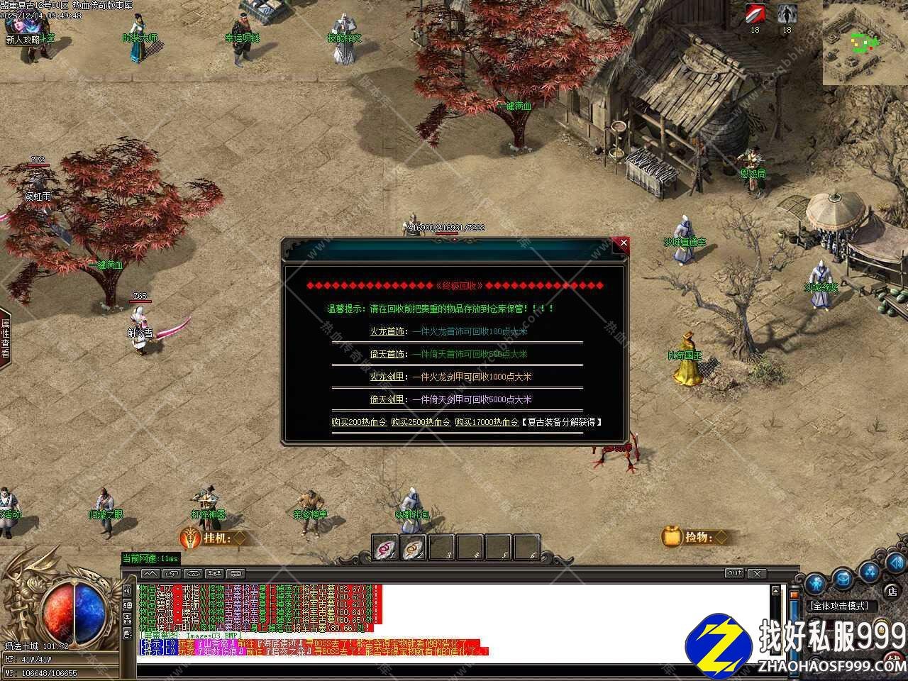 四.添加江湖宗师NPC,在那里可以用材料贴子兑换奖励,1个贴子可兑换两千万经验,能升到100级;1个贴子可兑换五千元宝,散人玩家的专属;50个贴子可兑换护体神盾,超级防御。温馨提示:所有地图都有掉落贴子材料,其中福利怪必爆一个。