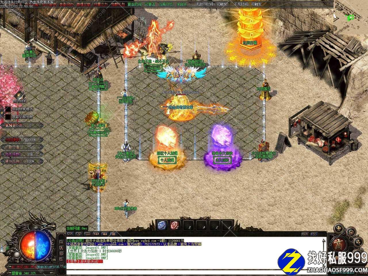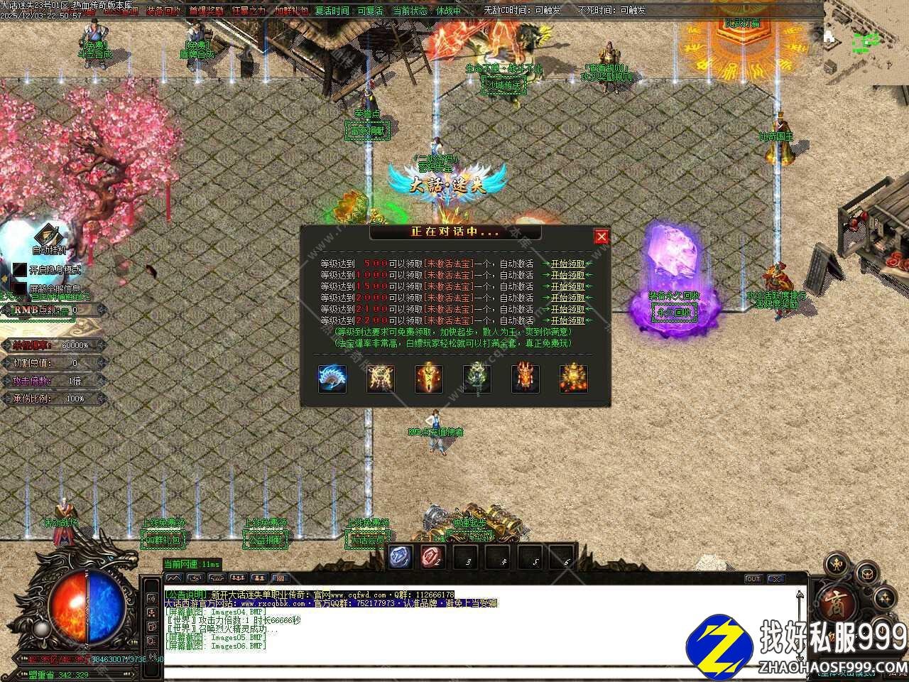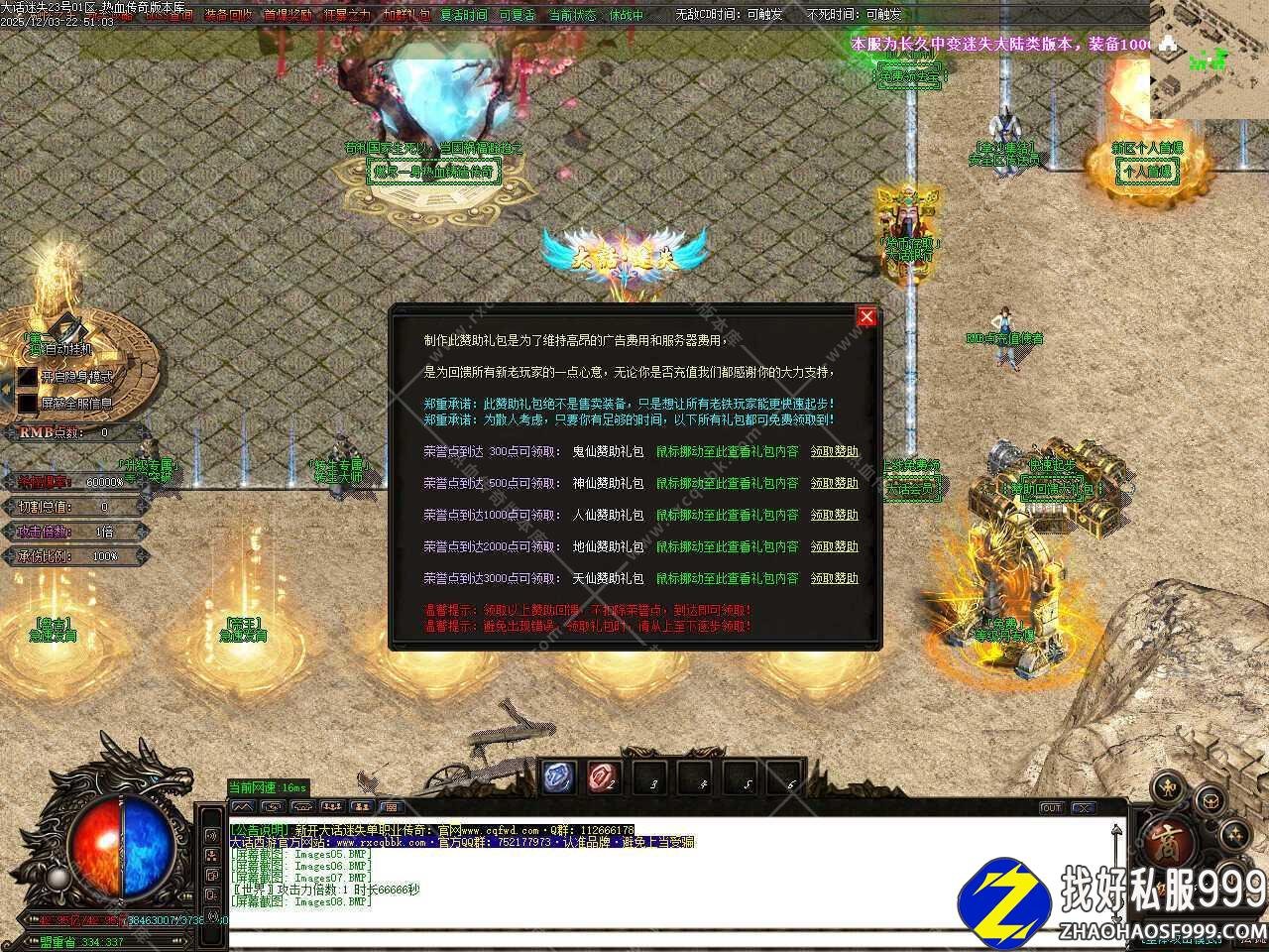 五.本服属于纯元宝服,无回馈,无沙捐,无赞助,一切免费,元宝可以自动打怪获得,后期一个小时可以打上千万元宝。