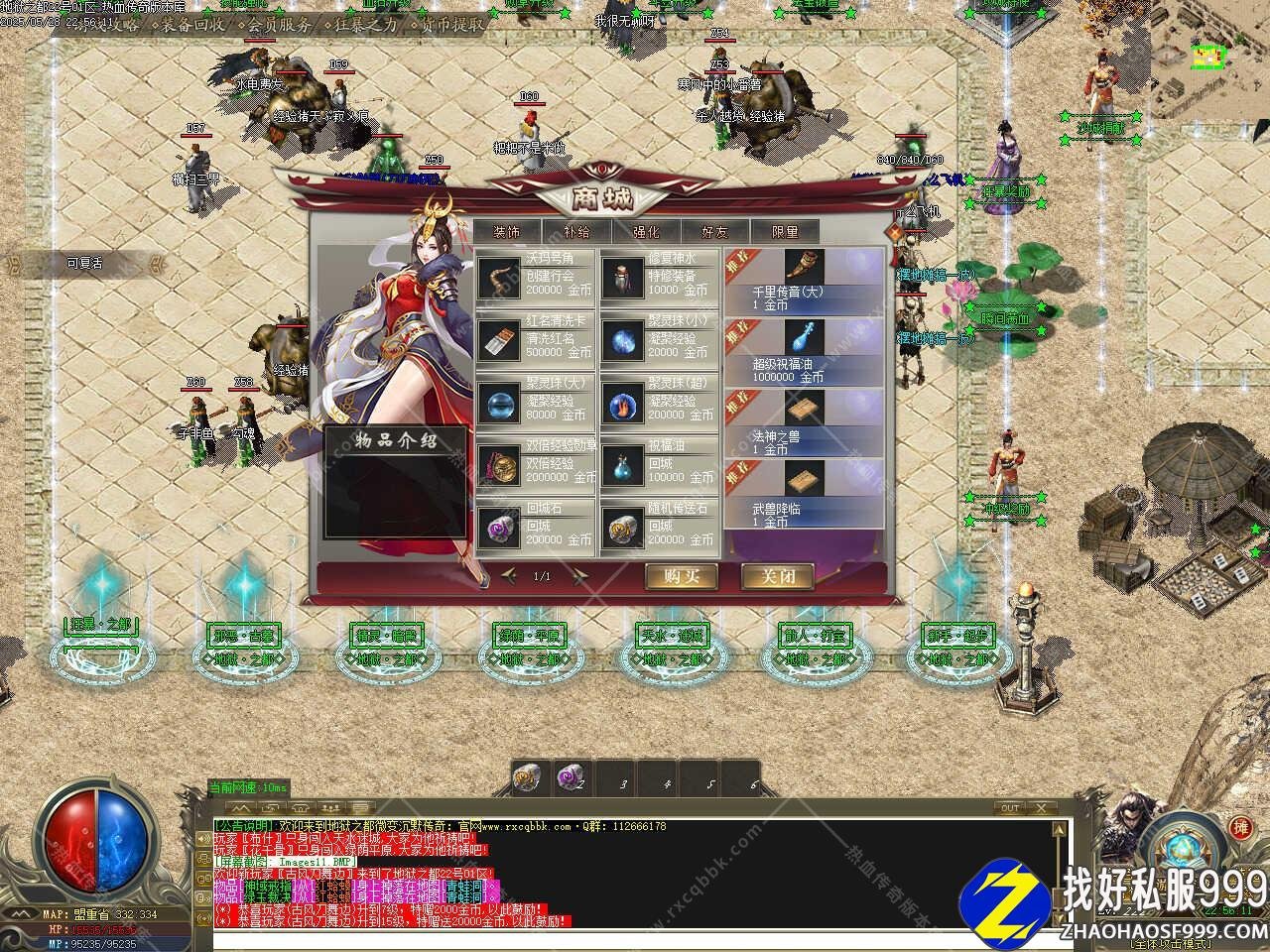 七、新增冰宫乐园地图,刷新冰宫甲虫、冰宫雪人、冰宫战士、冰宫神将等普通怪物,BOSS有冰宫神虎、冰宫教主、冰宫魔王,特殊BOSS有福利BOSS、BOSS60分钟刷新一次,特殊BOSS300分钟刷新一次,可爆帝王系列、凤舞系列、神武系列、特殊首饰等装备,需要等级85级和金币50万进入,会员可免费进入。
