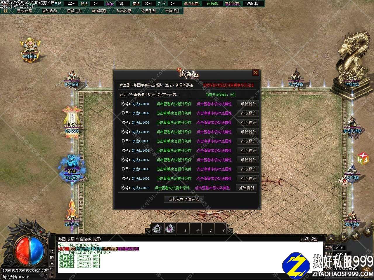 六.此版本中等级最高可升至350级,300级之后还可以在相应的NPC那提升等级,同时新增终极地图魂炼塔玩法,此地图分为10层,每层刷一只给力怪物,可爆出所有物品,魂炼塔魔气滔天,为了**妖邪,免费进入,该地图唯一获得元素值,中后期必刷的一个地方。