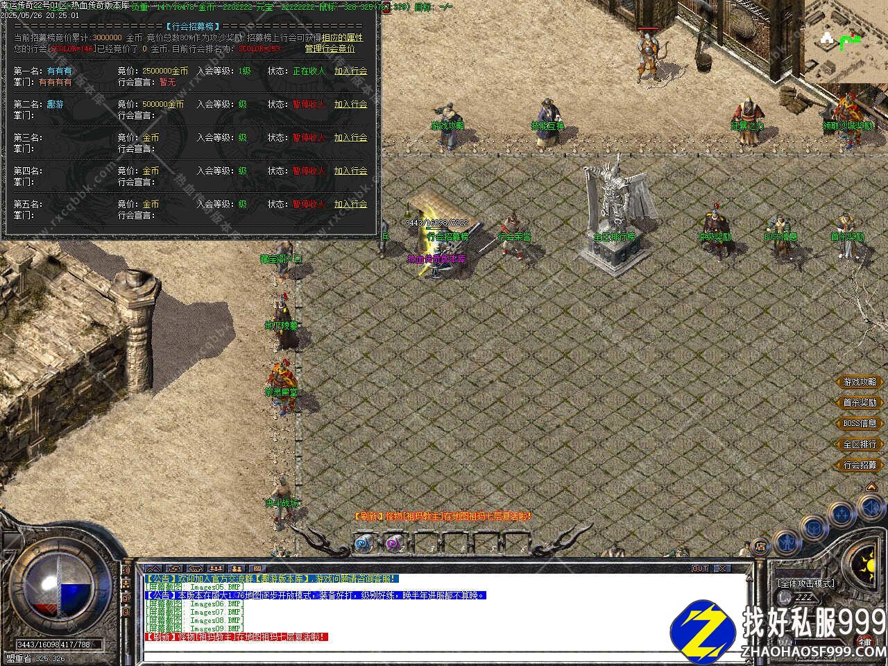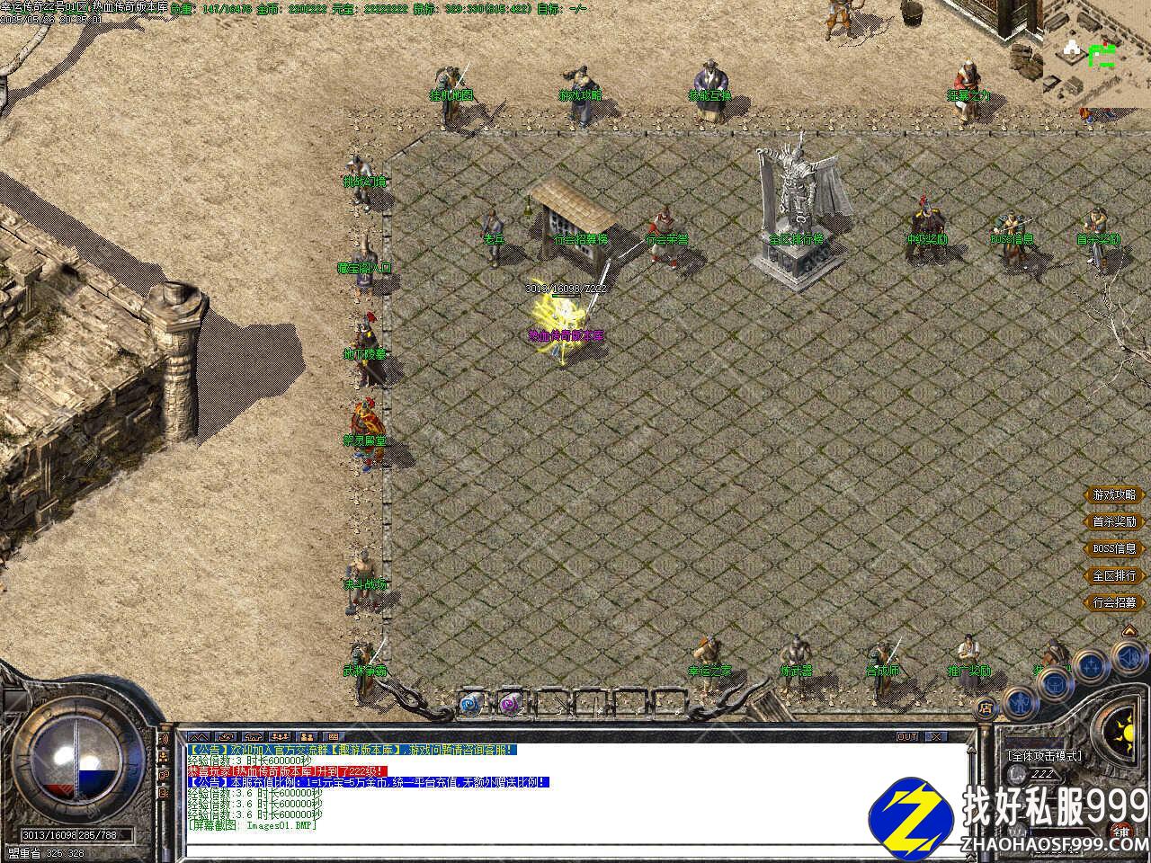 八、本服所有BOSS为2小时刷新一次,尸王殿1小时刷新一次; 白日门虎卫堂1小时刷新2只虎卫,13级召唤;虎卫堂门口1小时刷2只鹰卫,13级召唤; 未知暗殿巨型多角虫1小时刷新30只,法师25级即可召唤;38级召唤天狼蜘蛛;42级召唤花吻蜘蛛;44级召唤900血半兽勇士,未知暗殿和封魔谷都有刷!