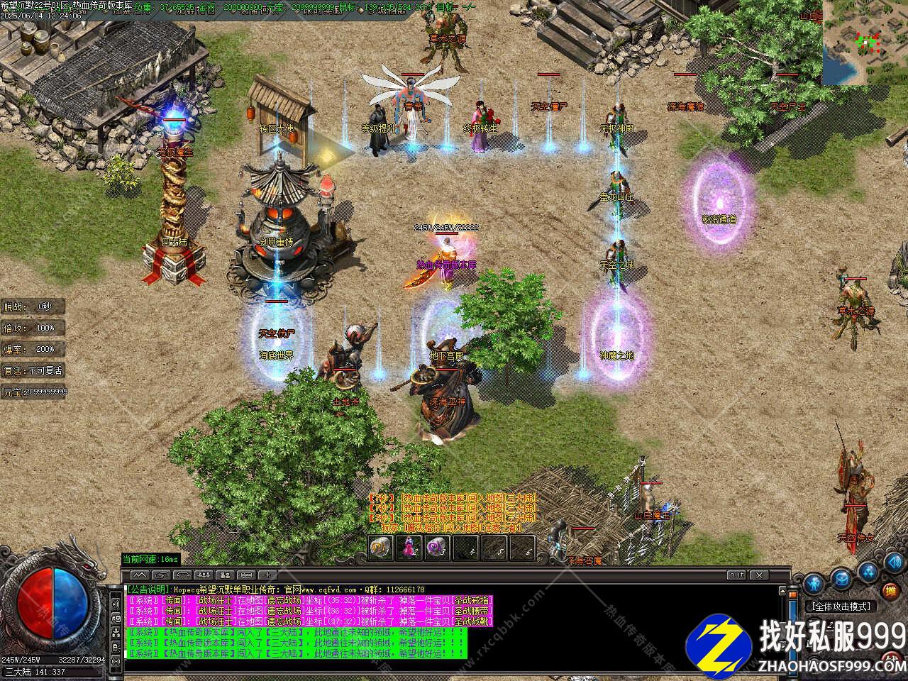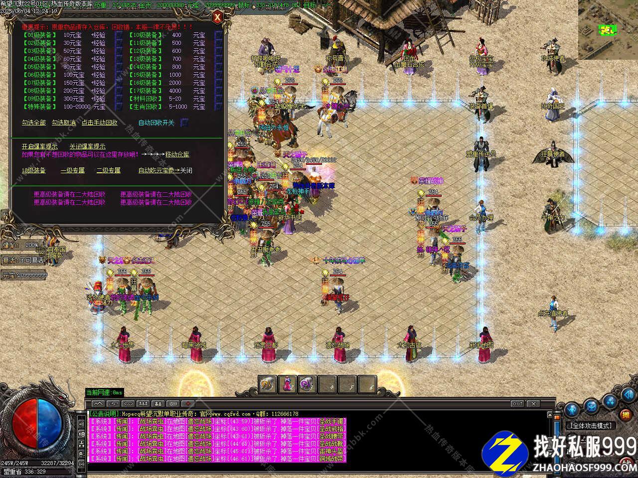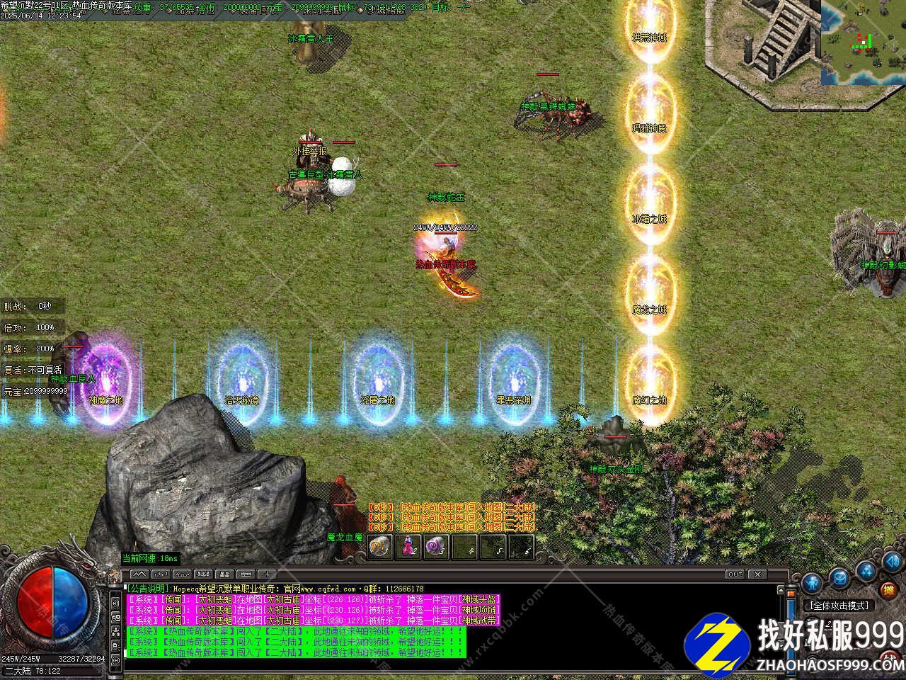 版本介绍:本服所有怪都是BOSS,所有怪都有几率出终极,粉色,蓝色BOSS更富挑战性,享受绿色游戏。