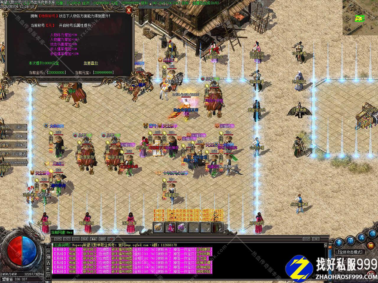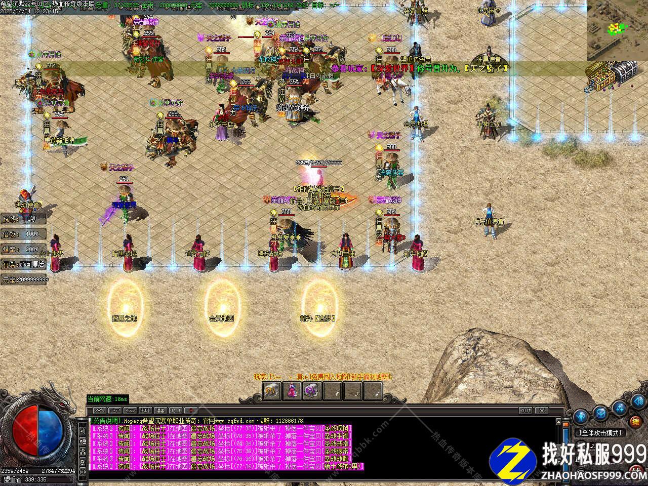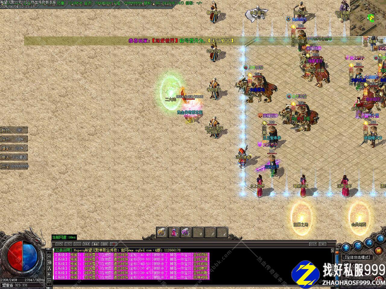 版本介绍:本服所有怪都是BOSS,所有怪都有几率出终极,粉色,蓝色BOSS更富挑战性,享受绿色游戏。