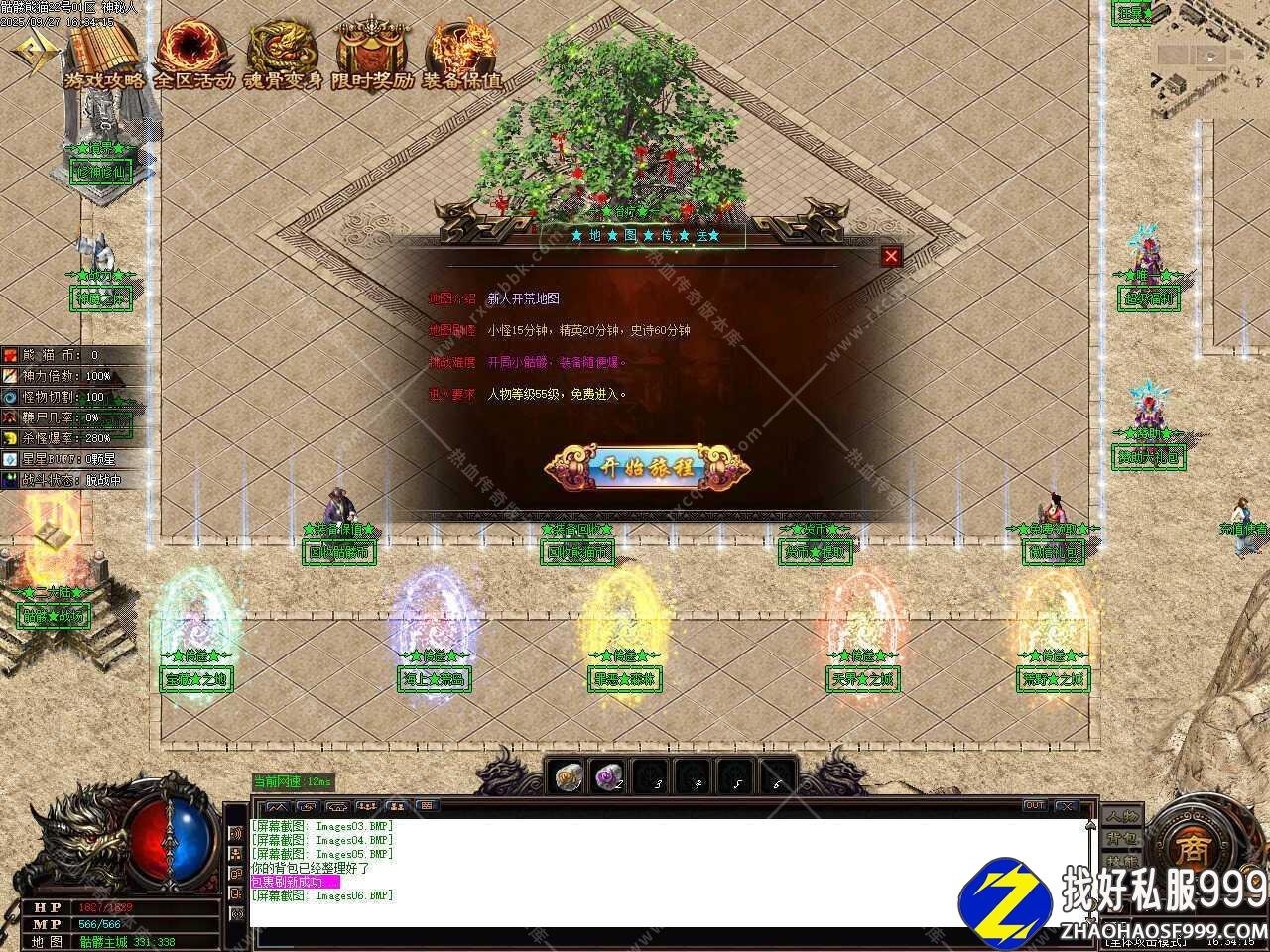 八、添加冰封遗迹等级地图,地图刷新怪物洪荒30分钟,史诗30分钟,世界30分钟,传说远古60分钟,装备随便爆,需要人物等级115级,金币5万才可以进入此地图。
