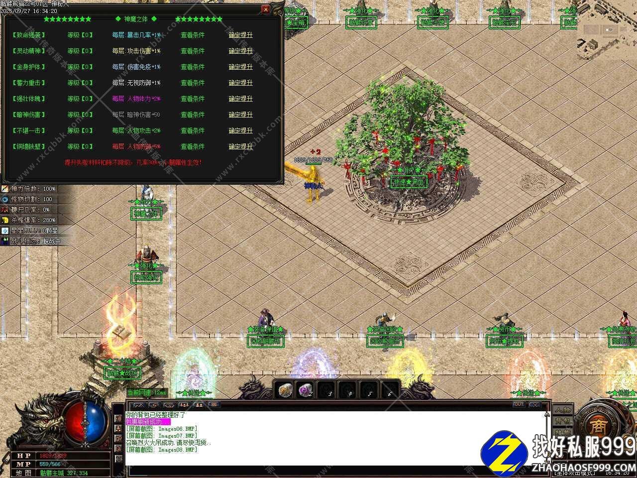 三、添加装备强化功能,全身强化达到110星,HP+4000,物伤法伤减少百分之10,拥有之前BUFF,全身强化达到180星,HP+17000,攻击+100 ,伤害吸收20%,血量低于20%恢复100%,60秒CD。