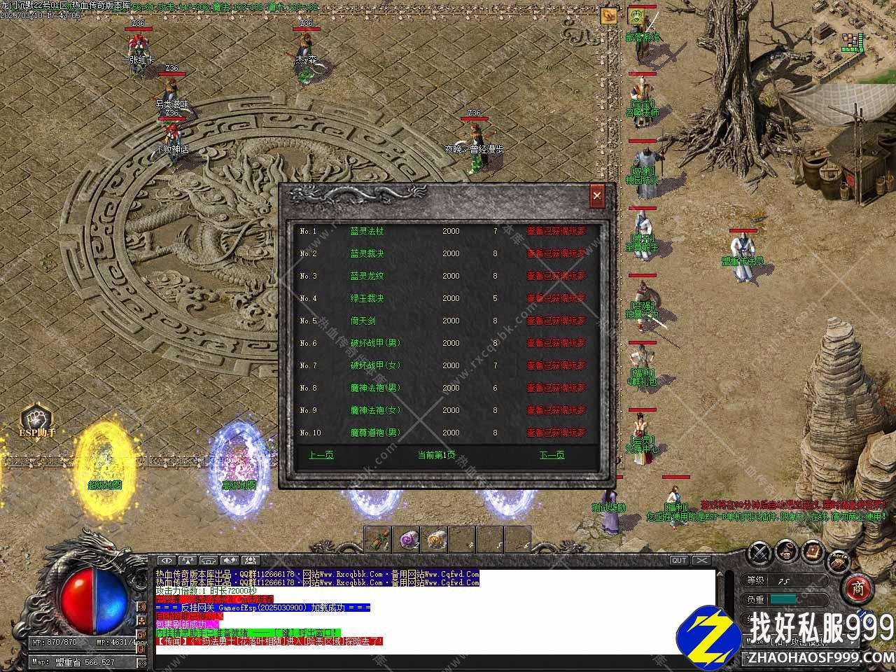 版本介绍:启动时M2上脚本报错是因为没有加载ESP插件,不影响游戏,但大背包捡物等功能不能使用,需要的自行打开ESP控制台选择服务端目录点安装,其它地方不需要动。为避免插件不能使用时无法启动服务端,站长没有加载插件。