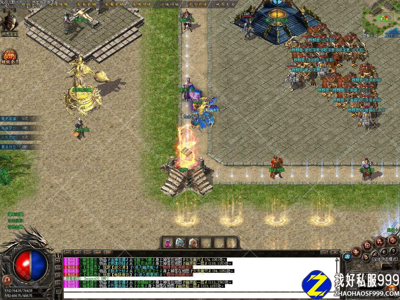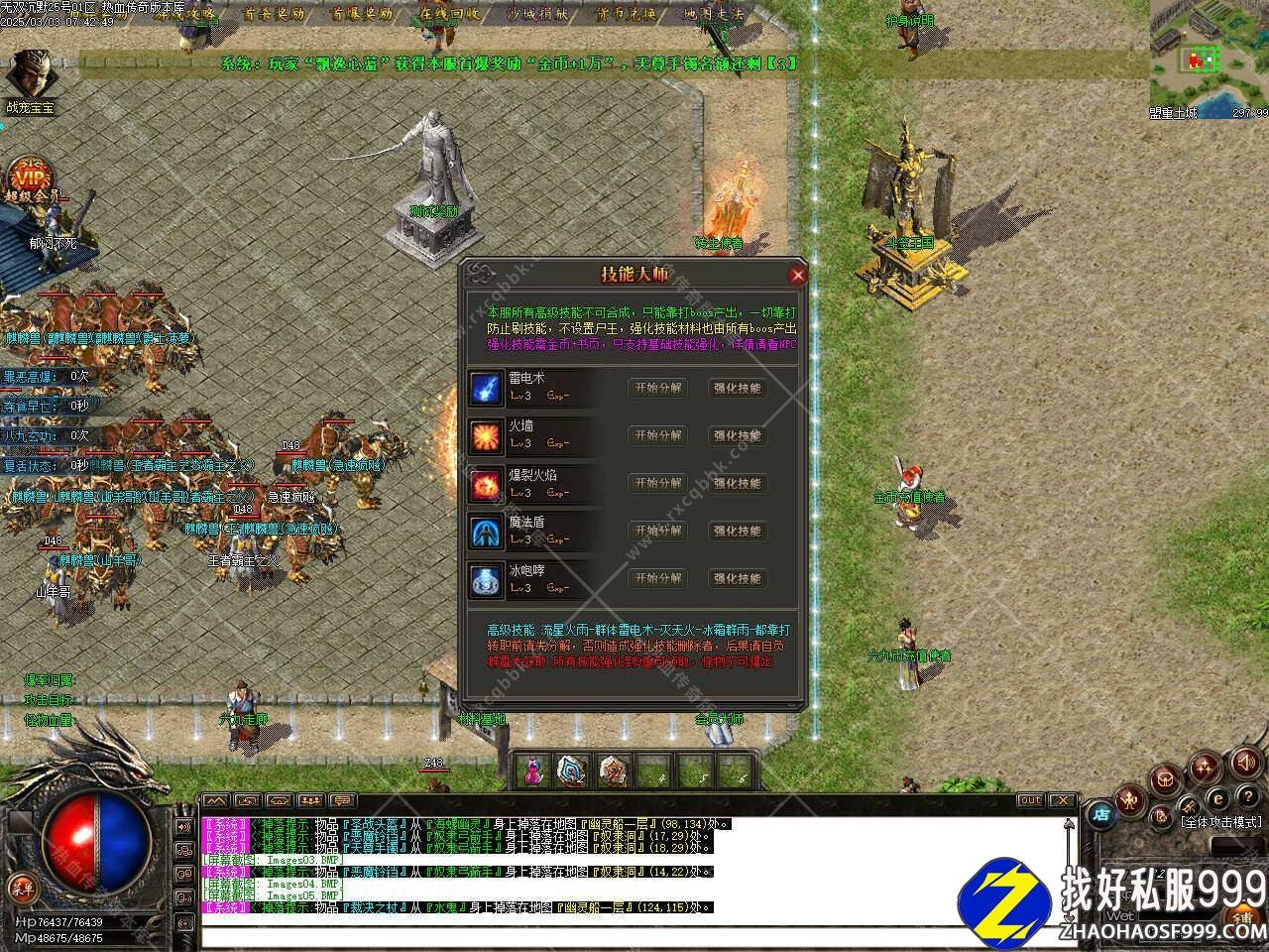 版本介绍:新增活动财富降临,会在游戏中弹窗提示,每次开启站在土城黄金光柱点可获得大量金币。新增神技广场活动,BOSS2小时刷新一次,高几率爆出各种高级技能,共分为2层,boos不爆技能。