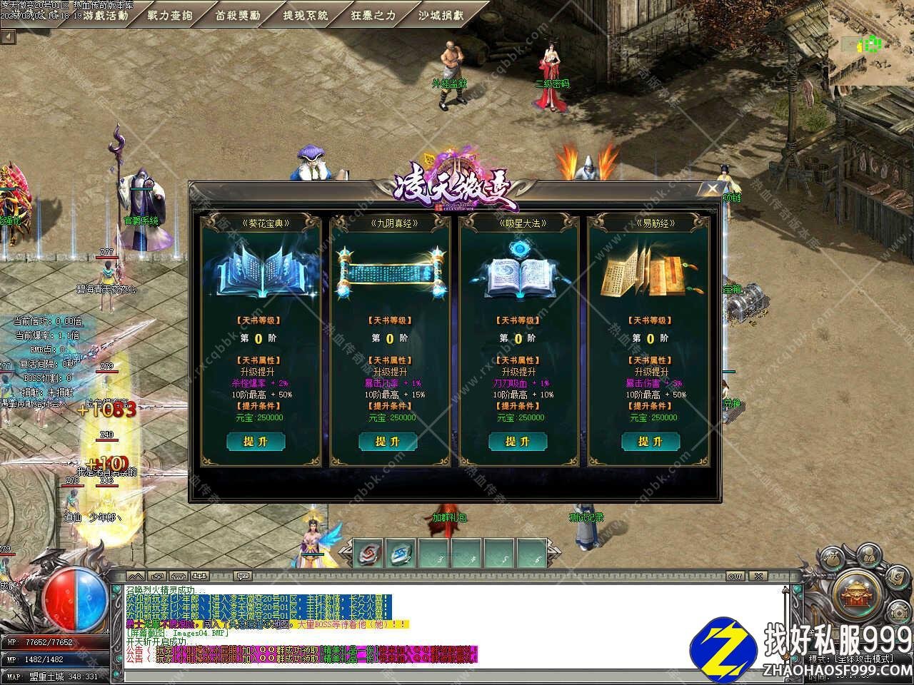 版本介绍:新手上线后不管是散人玩家还是老板土豪,建议有多余元宝一定要先升级天书的爆率加成,哪怕只提升几次,爆率加成的感觉明显不一样。
