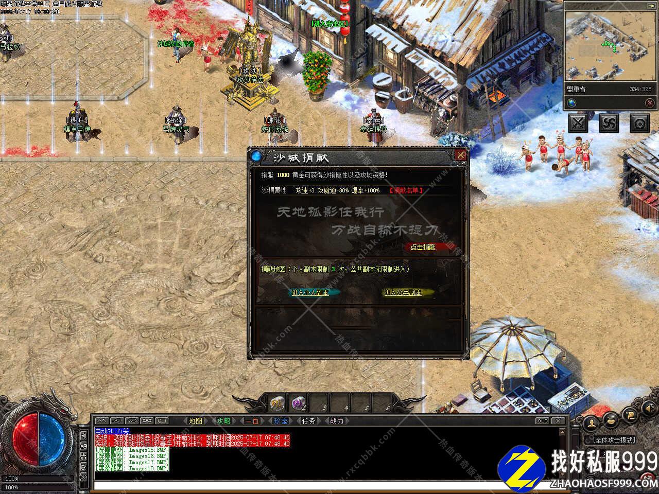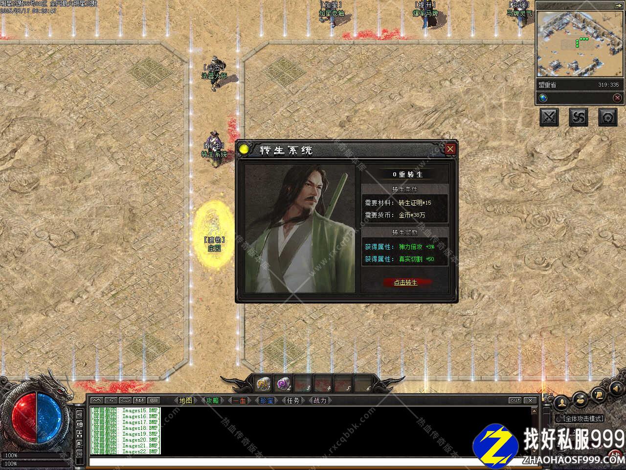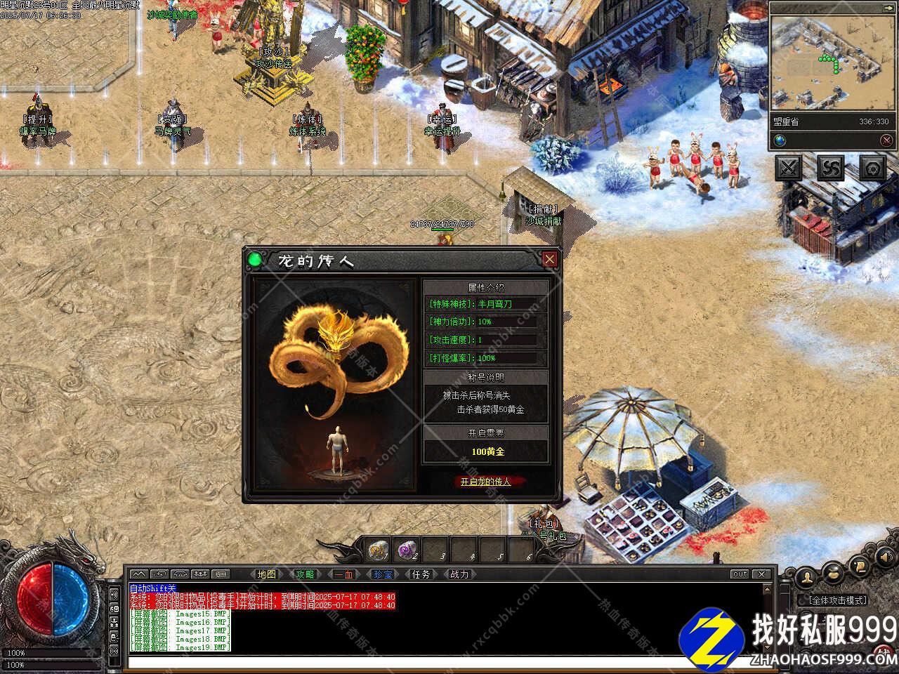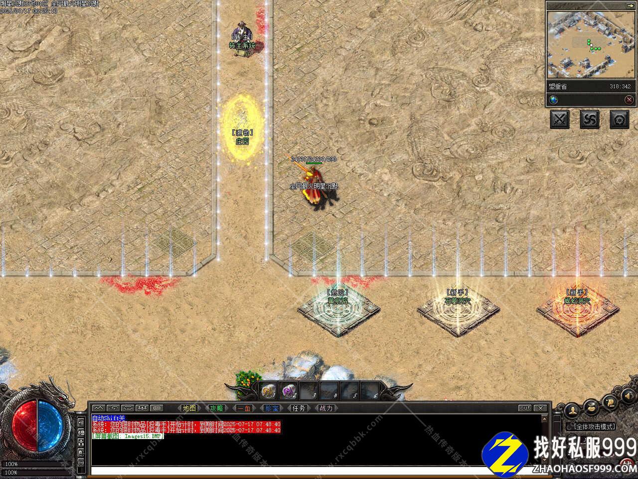 7、修改个人仓库换成无限仓库并补充仓库UI;修改岔路路口NPC的地图切换限制为1分钟;修改老镇长NPC的设定是在雷霆之路随机出现,比奇的老镇长改为随机出没;修改因终极怪物缺失数据库,替换为大帝の骷髅王,爆率没变。