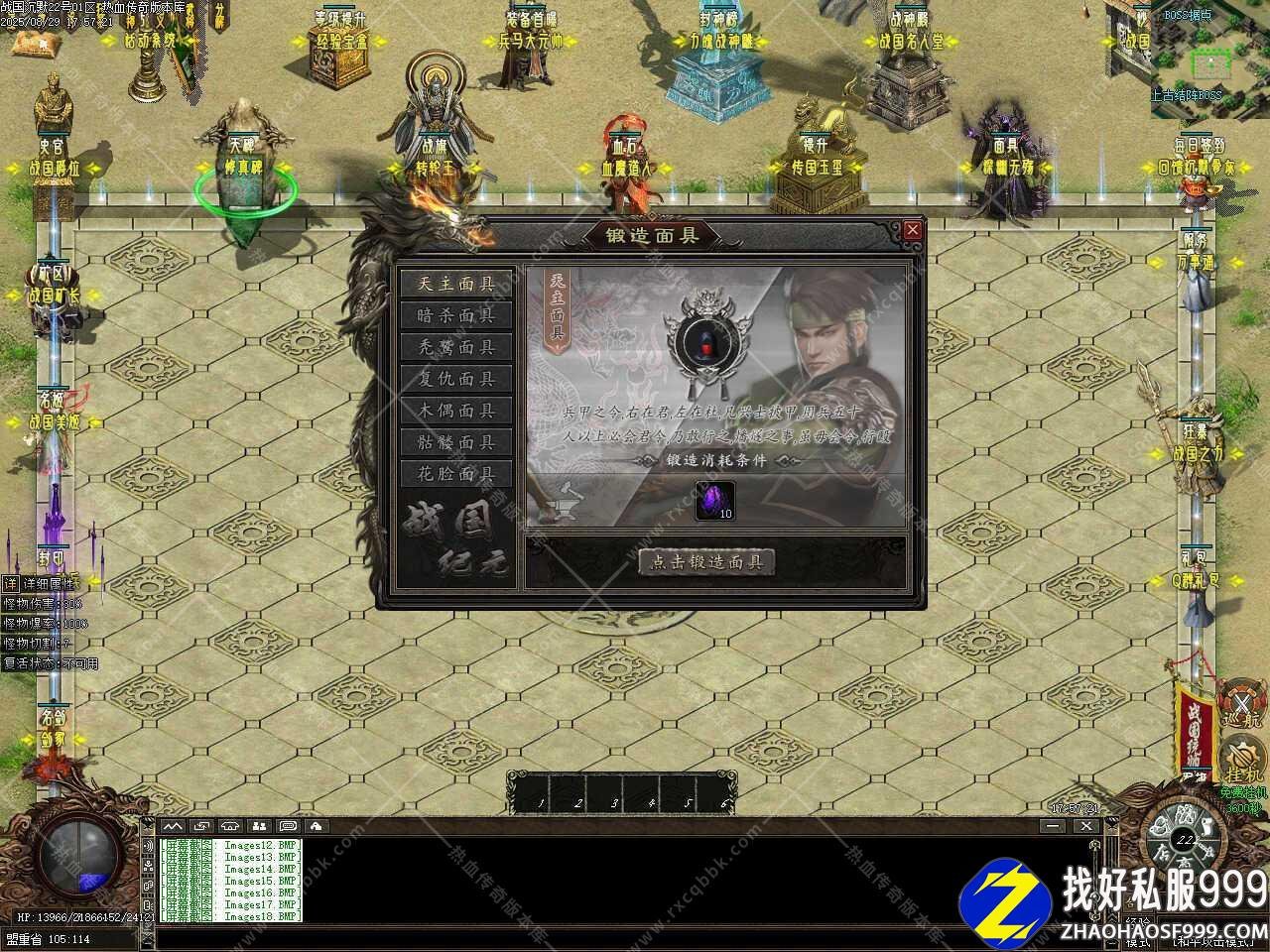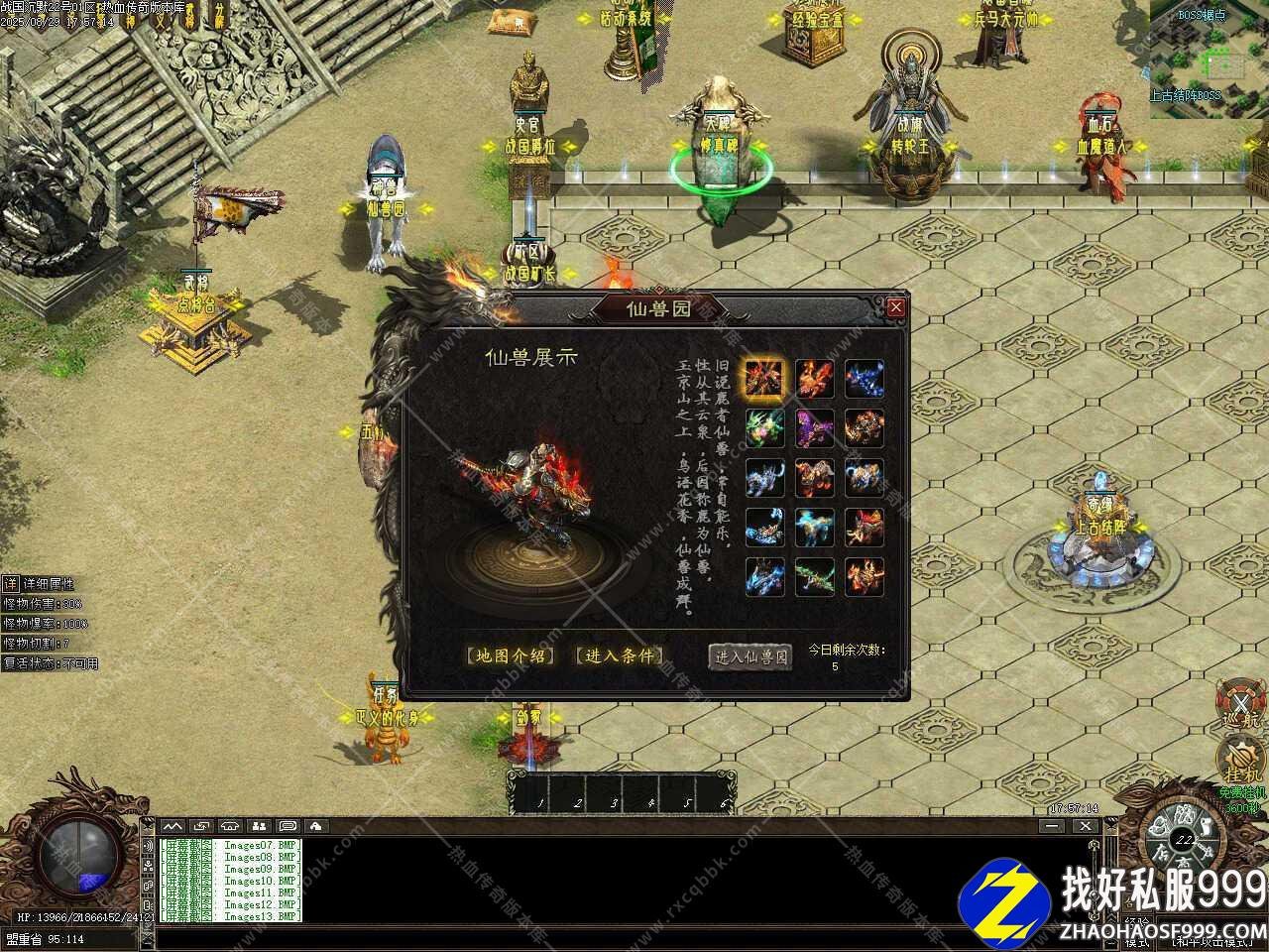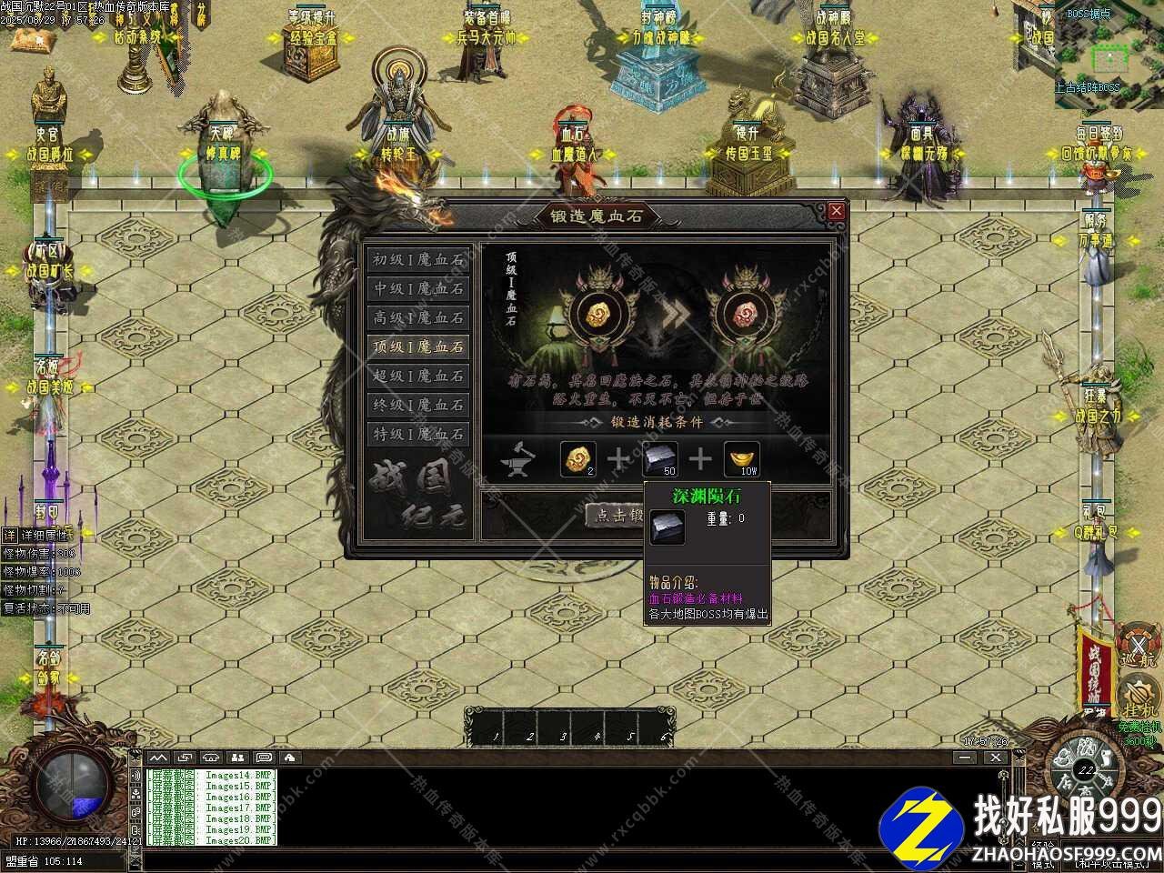 二、添加上古结阵功能,可以把没用的材料,装备,等投入结阵,每投入1次装备材料,上古结阵增加1层,奖励相应的元宝!投入的物品品质越高,得到的元宝越多,结阵每8888层土城药店刷新一只超级BOSS,珍惜材料、终极装备不是梦。