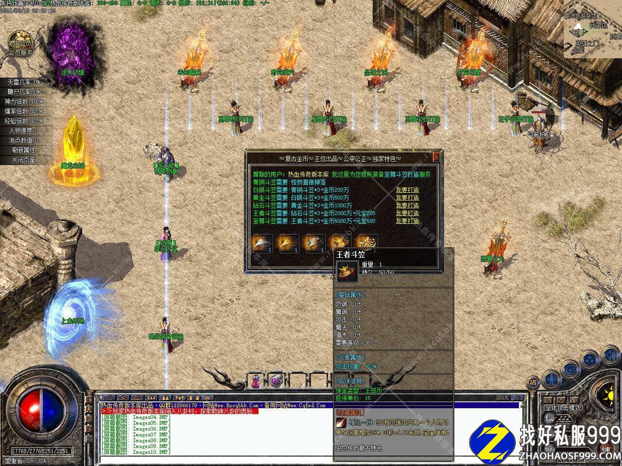 版本介绍:新增锻造炉NPC,可以锻造强化指定的装备,材料装备必须跟主装备一致,百分百成功,强化时随机增加属性,全身10件触发额外属性,装备强化使用50万金币,可对强化次数进行提升,每次消耗10个完整晶石,提升说明:沃玛、祖玛、赤月装备强化峰值是5,对次数不满意的可以用完整晶石锻造,雷霆,王总强化峰值是9,同时还可以进行重置,重置时当前装备强化满方可重置属性,每次10元宝。