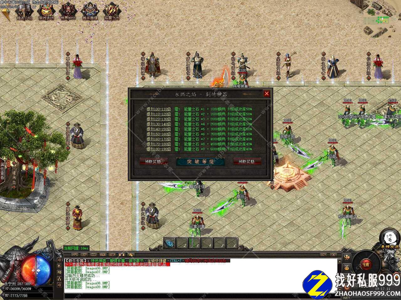 四、添加等级突破功能,需要一定数量的能量之石,升级成功率40-50%,每突破10级可领取一次称号,200级激活几率打掉对方随机或回城石。