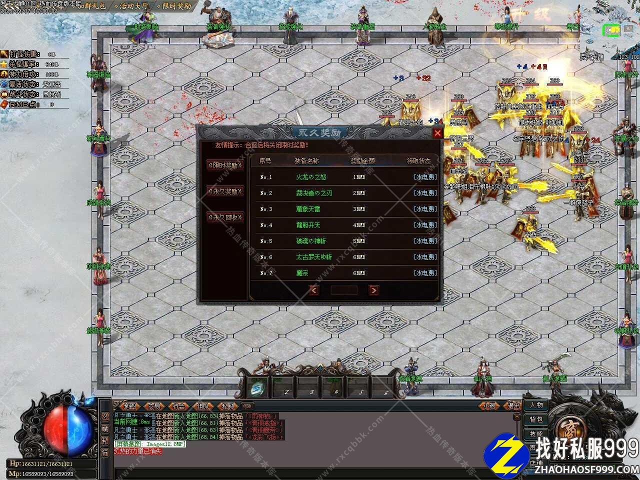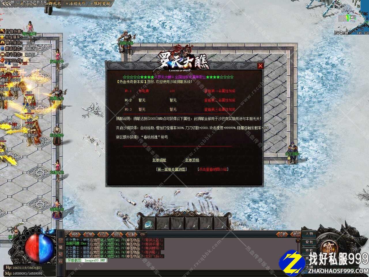 二、本服积分1: 100,积分在游戏中非常好获得,散人轻松发展,本服地图无任何限制,回归传奇本色,一切都靠打。