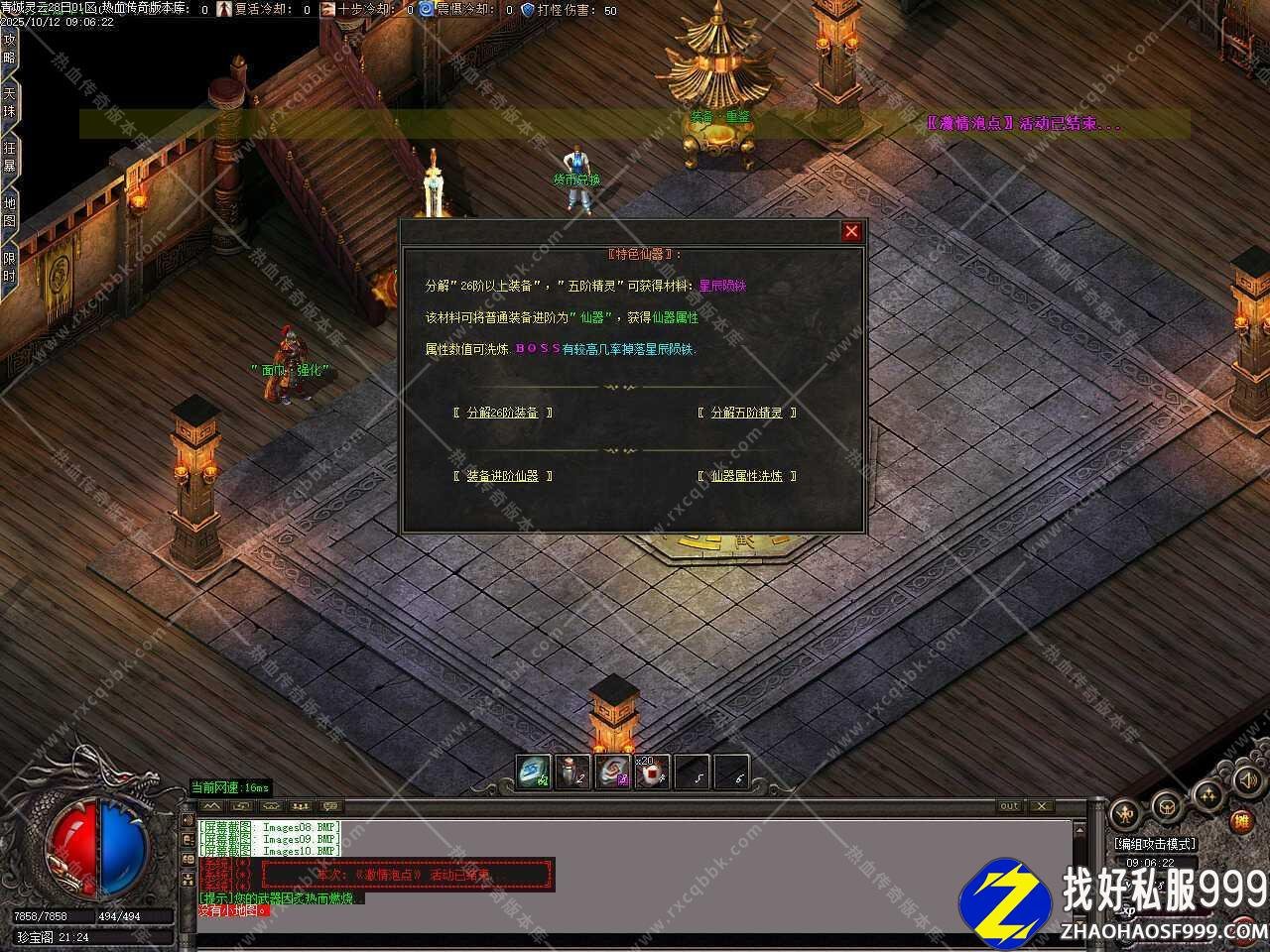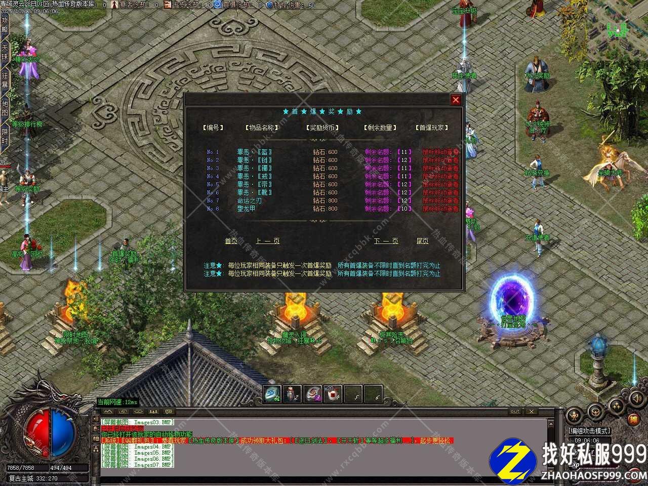 八、本服功勋系统奖励丰厚,地图内的树妖,BOSS,都有几率爆好装备,等级排名前三还有倍攻效果,此版本运十触发刀刀最大攻击,武器使用祝福油喝到7点,项链需要打到仙器属性,附带幸运值和转生赠大量属性,土城必点!不想打的话买赞助礼包均送!倍攻项链是很重要的特殊件,直接提升基础属性!非常强大!谁用谁知道。