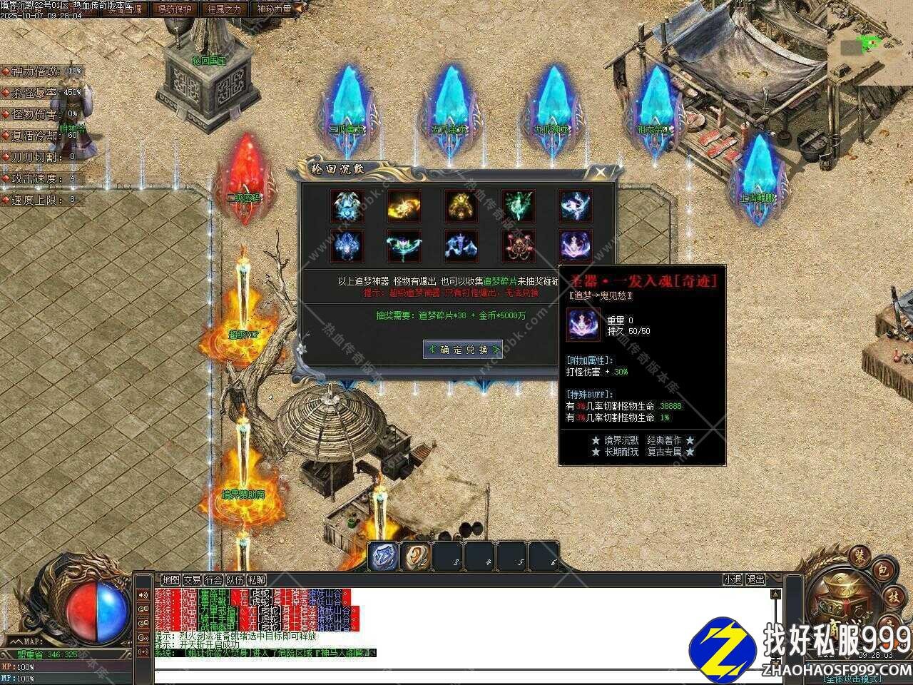 六、此服务端版本中添加生肖鉴定功能,十二生肖装备可以随机鉴定出各种各样的属性,完全看人品看运气,随机条数点数有基础属性(1~20点) 、元素属性(1~3点)、技能重数(所有技能随机)、神秘力量 (1~20点),鉴定时需要鉴定石一个和金币1000万。