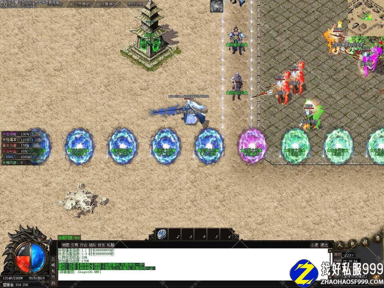 三、添加闭关泡点功能,免费安全泡点普通玩家每秒获得500W经验,只能在土城安全区泡点,最高可泡到600级,之后请选择随身泡点,元宝随身泡点快速升级,走到哪泡到哪儿,每秒收取50元宝,每秒获得8888万经验,最高可泡到650级。
