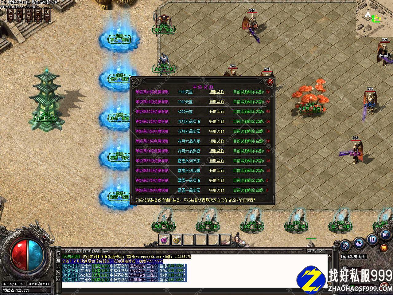 版本介绍:上线首先关注QQ群拿到兑换码,建议双开2个号,一个战士一个道士,配合打怪效率高,每个小地图会刷新教主[福利]BOSS,必爆当前地图高阶装备,战士号摆摊卖经验宝箱和爆出的卷轴材料,所有怪都爆万能碎片等材料,BOSS爆率极高,会玩一样能做高级号。经验宝箱是50级以后升级使用,宝箱爆率高免费兑换经验,作为散人你们都是传奇界的老玩家,玩法多多。