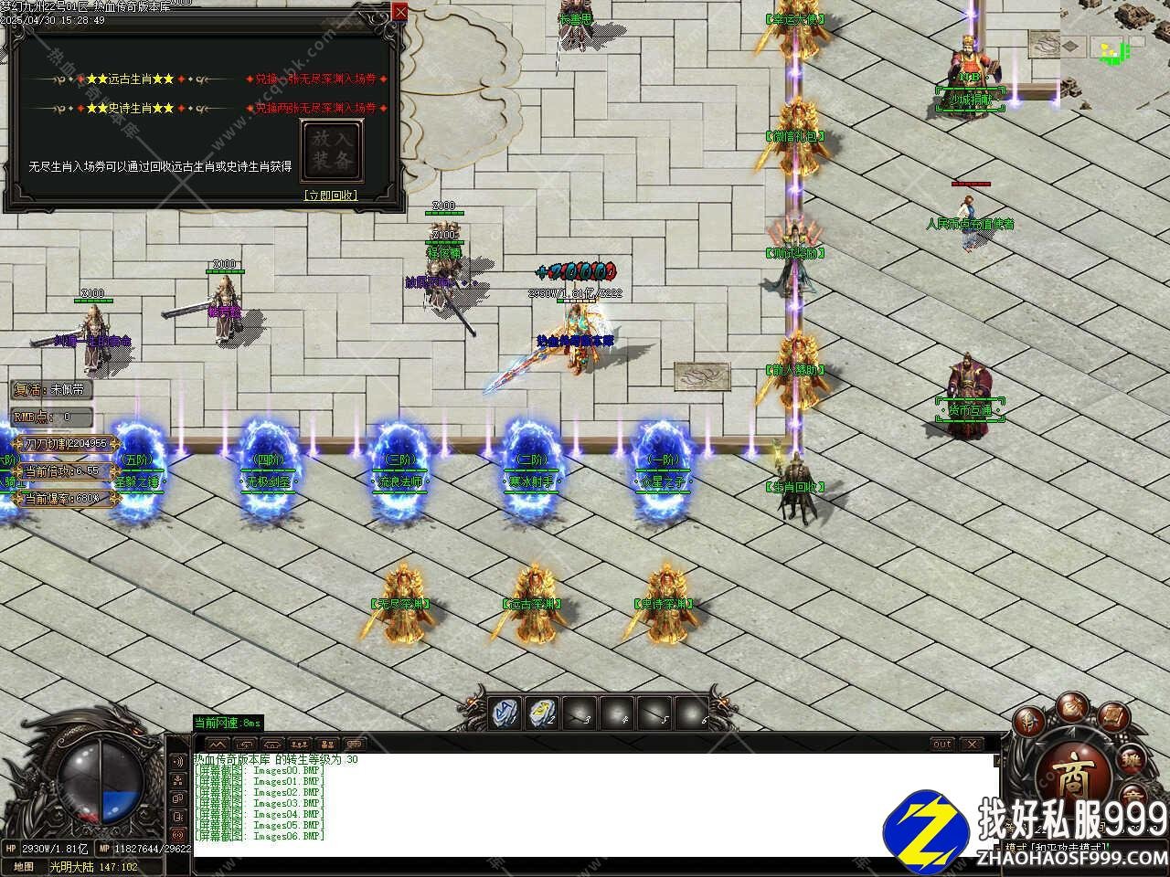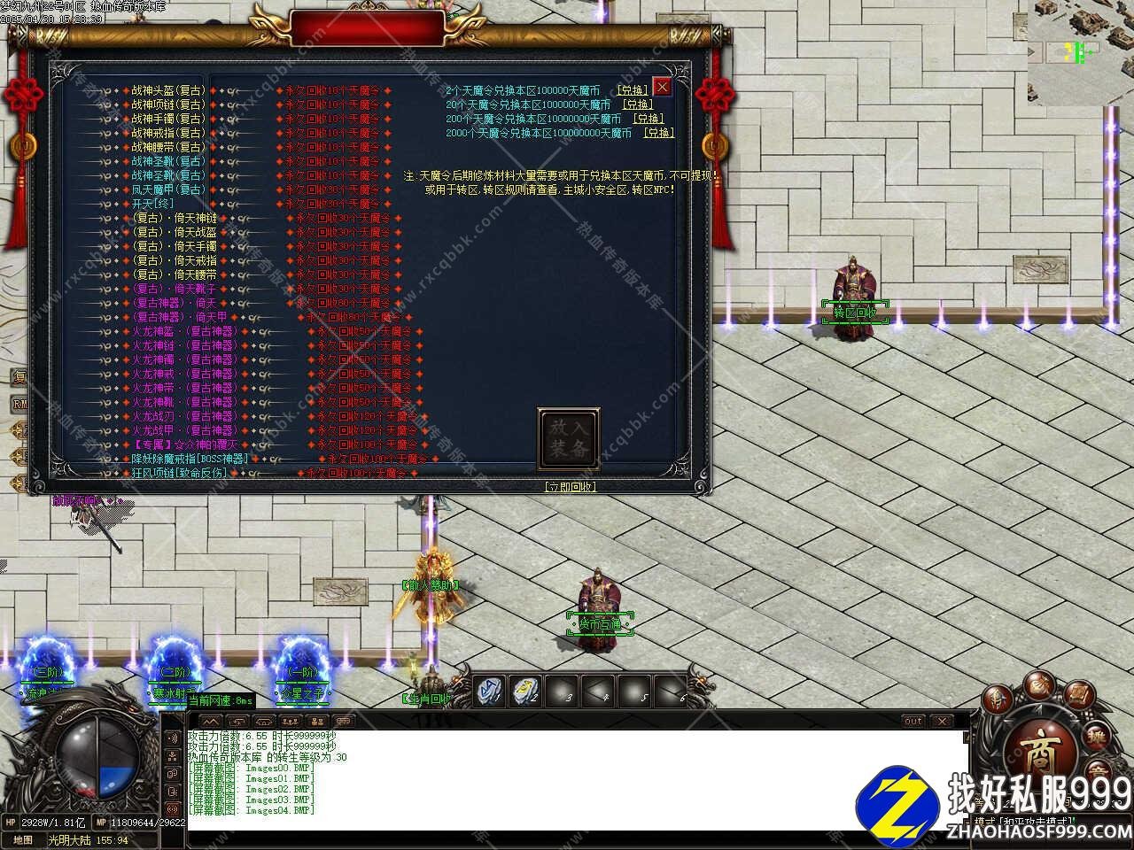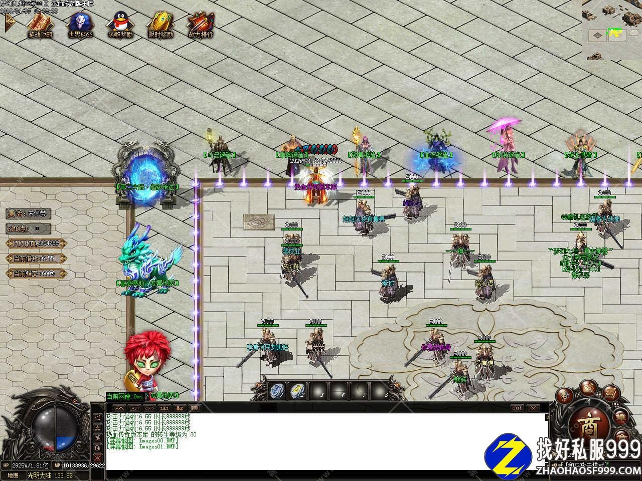 版本介绍:此版本在线泡点到100级之后土城转生升级到120级,进二大地图渡劫升级到130级(建议血量超过80W再去渡劫)打魔王88个可在而大地图召唤魔王BOSS必爆狂暴符经验丹。