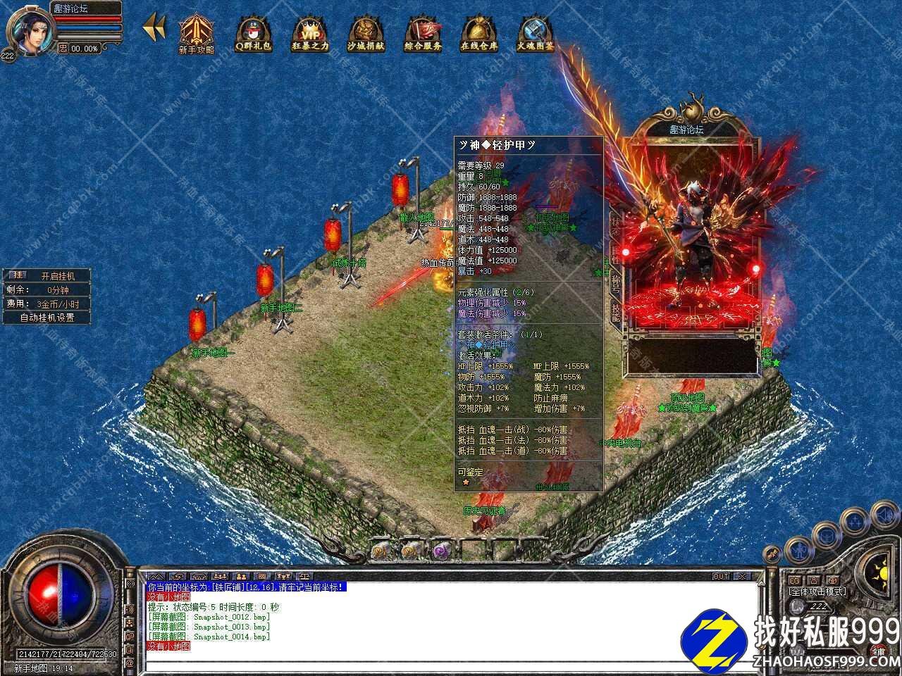 四、新增神甲锻造功能,锻造防御衣服前,请先去下装备上面宝石,否则后果自负,神甲比较普通的衣服拥有极高的防御,没有这些防御神甲,很难生存的。