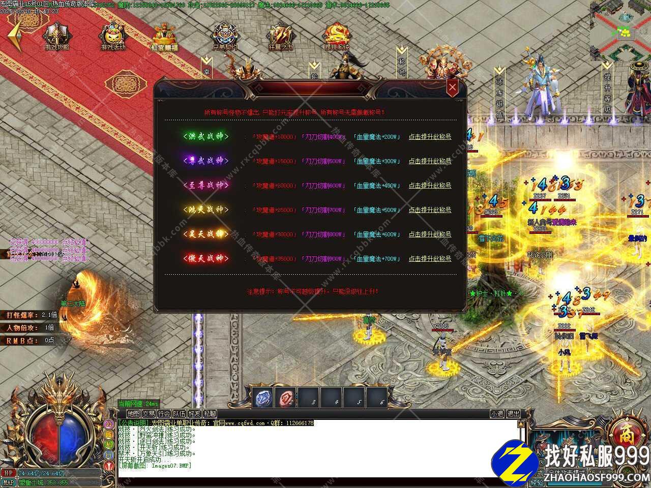四、此传奇版本元宝可在土城左边升级切割,钻石可提升称号以及打怪冰冻神器,随处泡点到500级后,每个怪物必爆等级丹,可在土城正上方提升等级,可进等级地图。