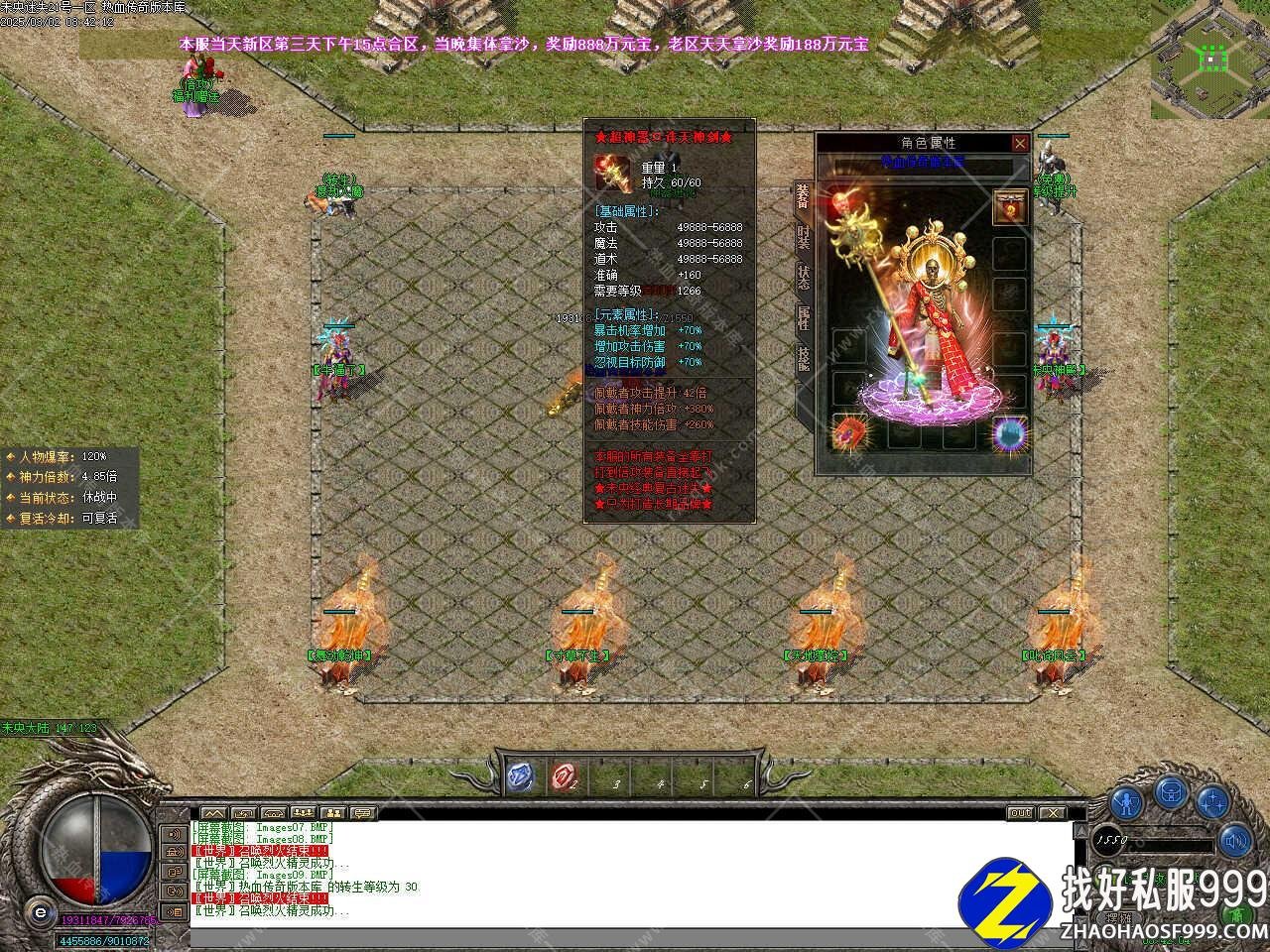 版本介绍:新增新区福利地图,boss零攻击零防御,每三小时开启一次,奖励神力装备、特殊装备、神器装备等,怪物0攻击,0防御,爆全服所有物品,需要14转才可以进入此地图。