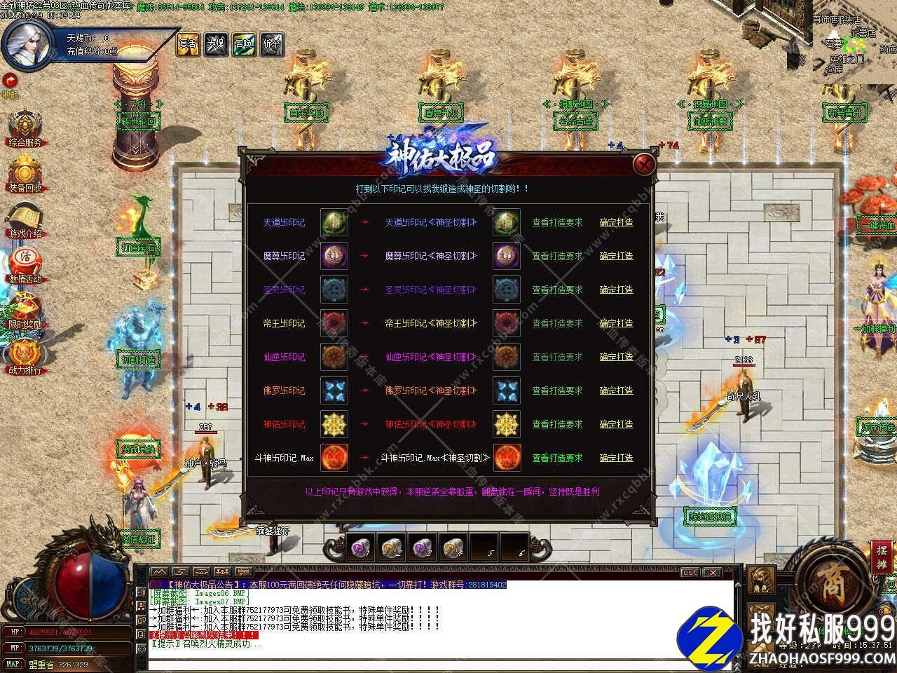 版本介绍:新人上线去土城边泡点边加群领取加群礼包,免费赠送开天斩,施毒术,小特殊件,本服包袱里可以直接使用回收和仓库功能。