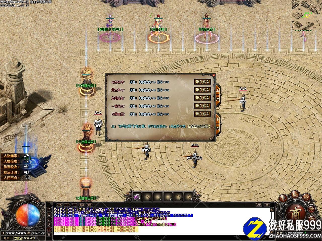 版本介绍:此传奇版本新增多个称号,称号附有切割怪物和增爆率等属性,"称号证明"打怪必爆。