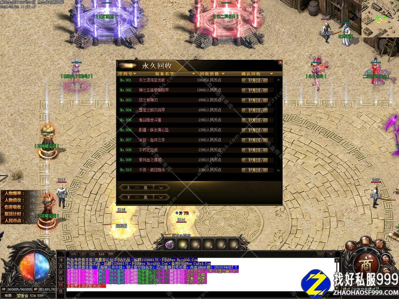 版本介绍:新增测试区记录功能,测试打到装备回收获得元宝,正式开区可领取50%元宝。测试回收装备获得的元宝,系统自动记录,无需手动记录。<提示:正式开区,人物登入后系统自动奖励到角色,不需要手动领取!