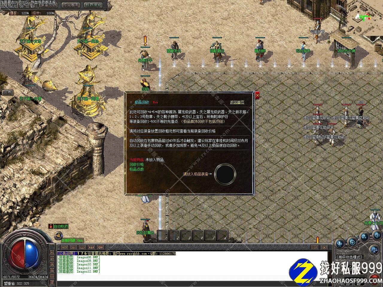 版本介绍:土城练级地图,吃三倍,双倍刷猪怪,挂机一小时1亿左右,手动效率翻倍100%,开三倍效率三倍,聚灵珠打怪爆,书页可以在回收界面兑换精魄和经验,收书页也是个不错的选择,更加轻松。