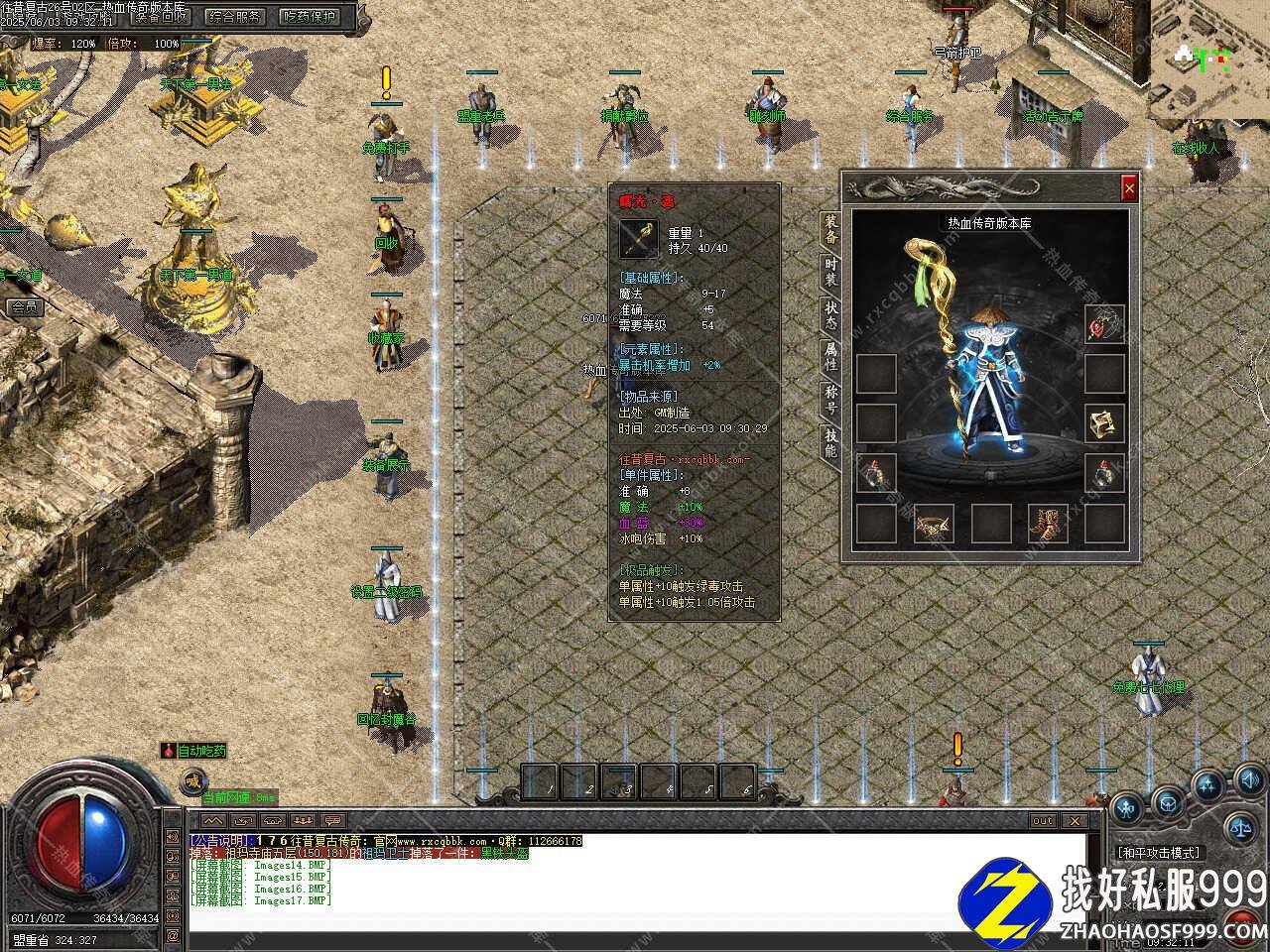 版本介绍:添加武器升级玩法,1-7点建议去沙巴克武器店,综合npc升武器保底,7-8点=10次,8-9点=15次,9-10点=20次,注意事项:1.升武器1-2个祖玛沃玛项链+6个黑铁矿+50W金币,黑铁矿商铺有卖也可以自已挖,2.升武器千万不能用极品,要用白装备,3.沙巴克武器店最高升级7点(必成)。 本帖最后由 传奇版本库 于 2025-6-3 21:20 编辑