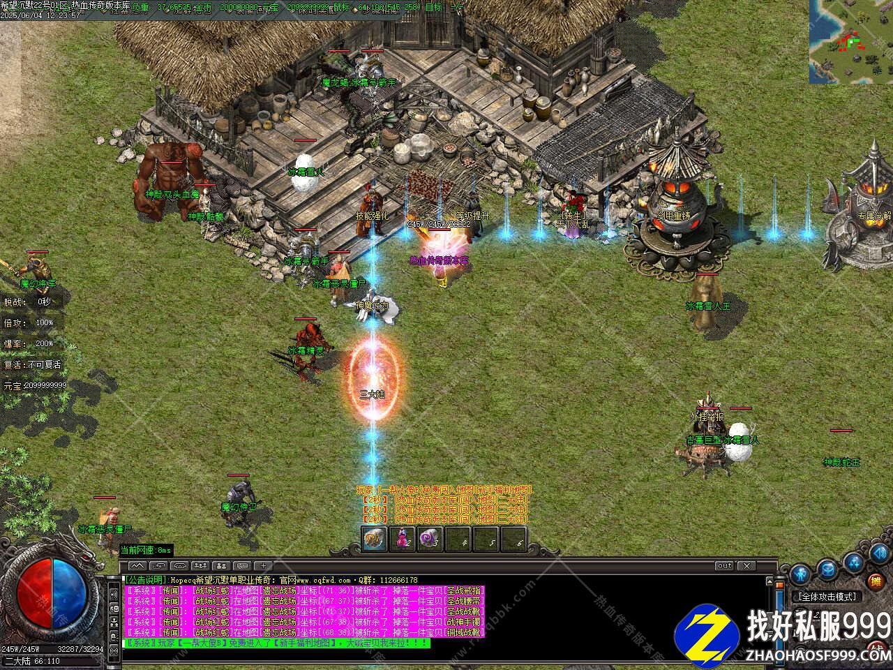 版本介绍:本服所有怪都是BOSS,所有怪都有几率出终极,粉色,蓝色BOSS更富挑战性,享受绿色游戏。