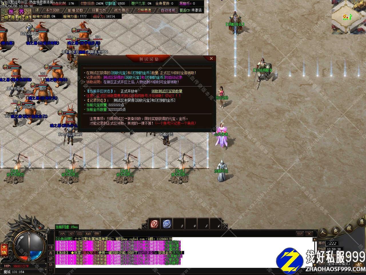 一、此服务端不设管理员,不出成品装备,不调级,为广大的玩家创造一个自己做主的传奇人的天堂,补丁大小6.11GB,测试客户端为17周年纯净客户端,版本带有假人和ESP大背包插件,游戏兑换码:17cm666。