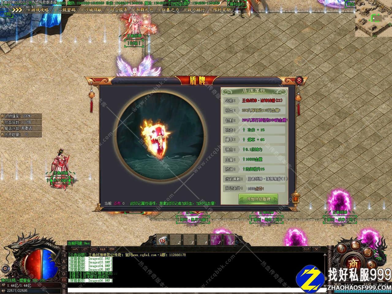 五、新增盾牌装备物品,升级至满级需要150W点,盾牌提升攻倍,几率切割怪物血量百分百,几率吸收怪物血量到自身,盾牌等级越高触发这些特效的几率越高,前期想打怪快,建议先升级盾牌。