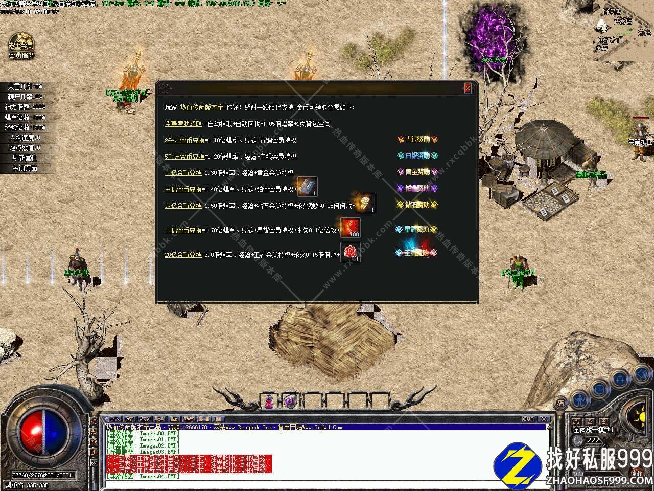 版本介绍:此sf999发布网服务端第一季装备1.76风格-雷霆之力,装备采用传统的盛大装备垃圾装-商店装-沃玛-祖玛-赤月-雷霆-王总,一共七套复古不花哨拾取鉴定看运气可以出极品属性,泡点值、经验倍数、人物速度神力倍数装备后缀buff,装备档次越高鉴定的属性越好,沃玛以上装备会鉴定强化值,这里就不过多介绍了,可玩性很高。