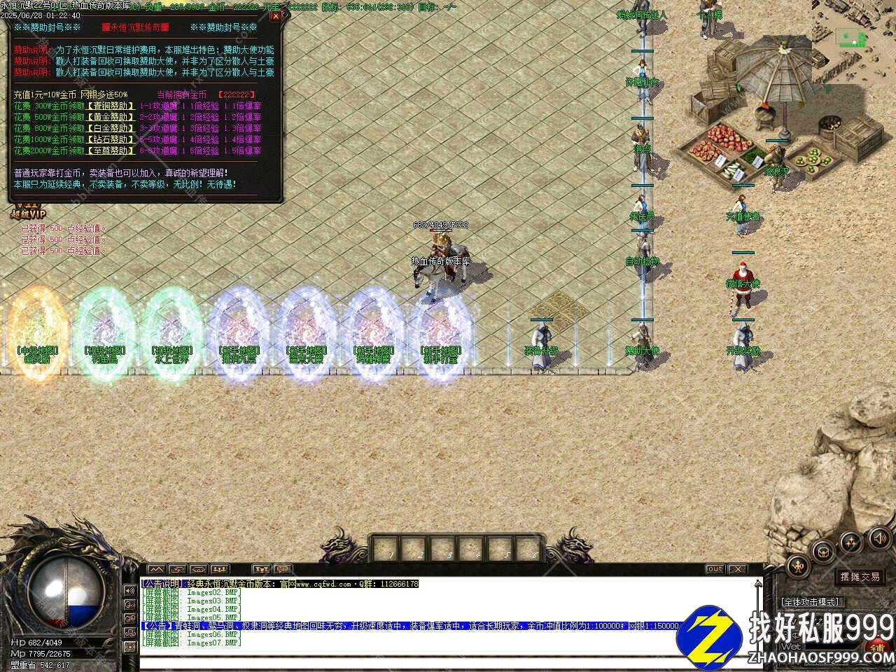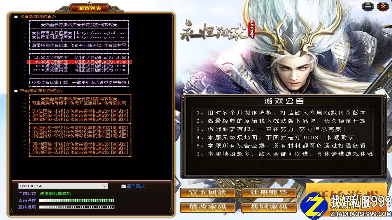 一、此sf999发布网服务端属于金币复古版本,是三职业类型的,不是单职业版本,补丁1.03GB,游戏兑换码是666888,此服务端没有使用功能插件,只加载了登录器插件,无大背包和自动捡取等功能,需要的自行添加,没有使用其它插件的版本感觉没有那么乱,优化了登录器皮肤。