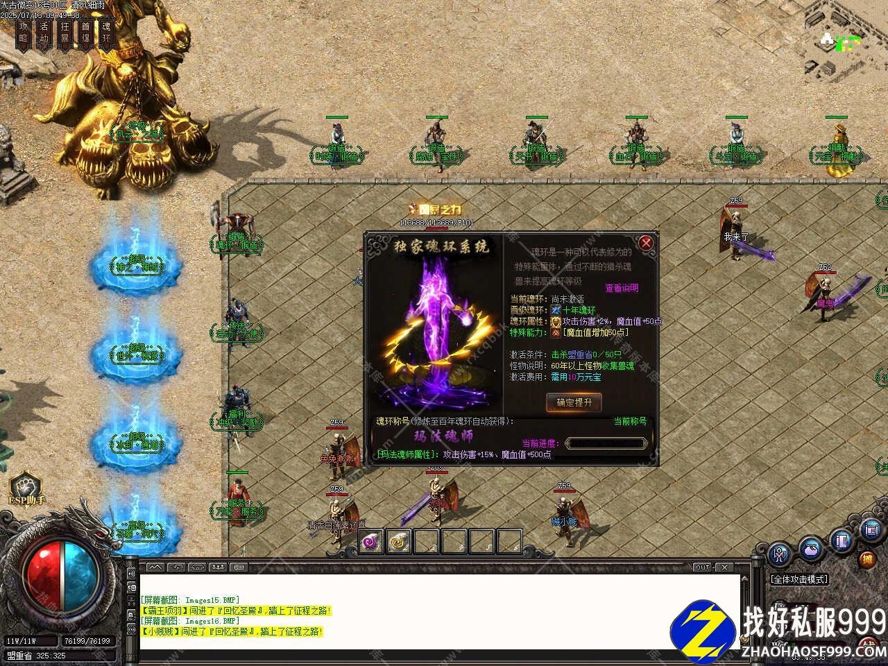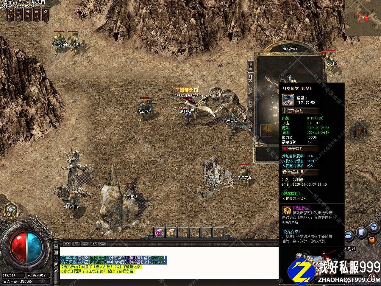 四、添加装备重铸功能,对装备的极品不满意或好装备却没有极品?在极品重生NPC那可帮你重铸,重铸需要风云晶石*1和8888元宝,剑甲最高加48点的极品属性,首饰最高加38点的极品属性,所有属性随机给予全凭运气,洗之前请看清楚装备哦。