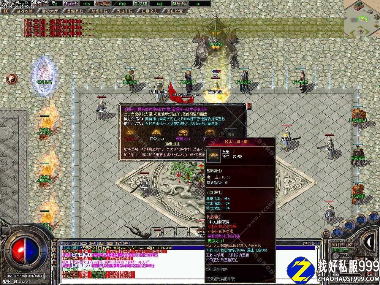 三、新增装备鉴定功能,高级装备可以在我这鉴定,每件装备只能鉴定一次,可以鉴定出多种元素,斗笠,头,连,勋章,手,戒,腰带,靴子,魂环,12生肖均可鉴定攻伤、体力、忽视、反弹、魔法伤害减少等,以上属性随机出两条,加1-5点,装备有10%的概率失败损坏,谨慎鉴定。
