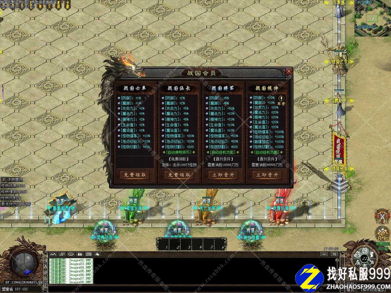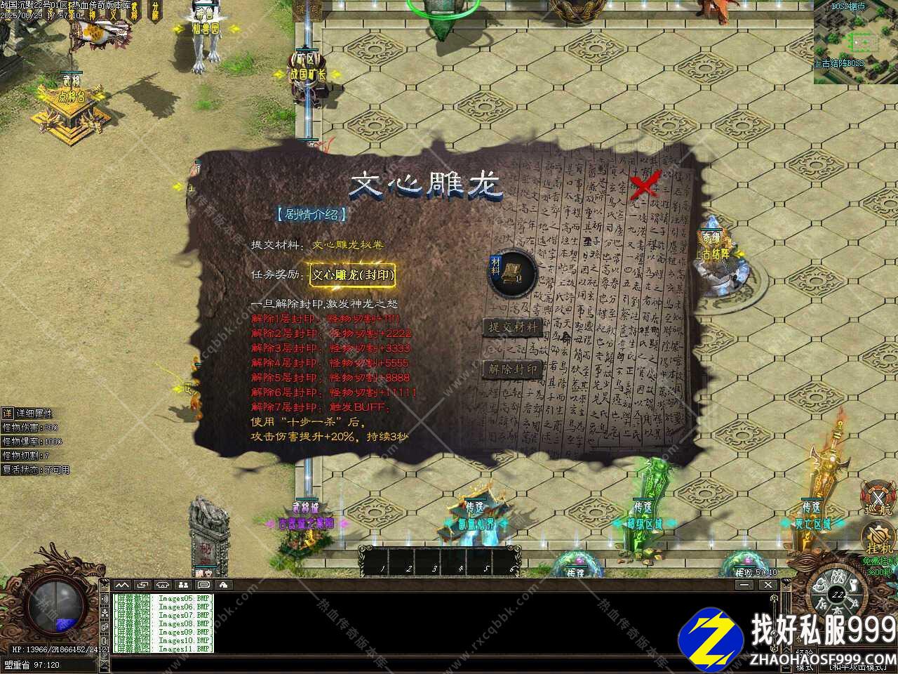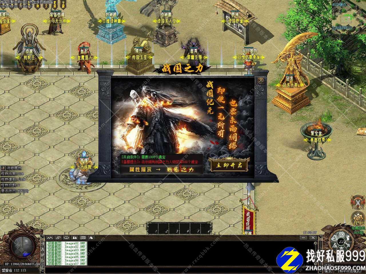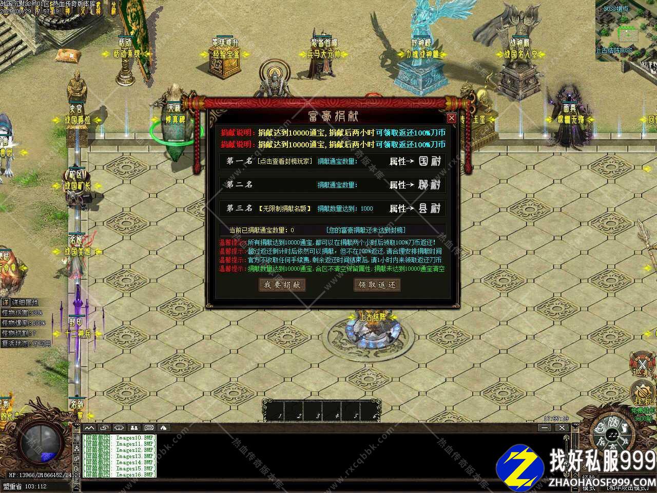 二、添加上古结阵功能,可以把没用的材料,装备,等投入结阵,每投入1次装备材料,上古结阵增加1层,奖励相应的元宝!投入的物品品质越高,得到的元宝越多,结阵每8888层土城药店刷新一只超级BOSS,珍惜材料、终极装备不是梦。