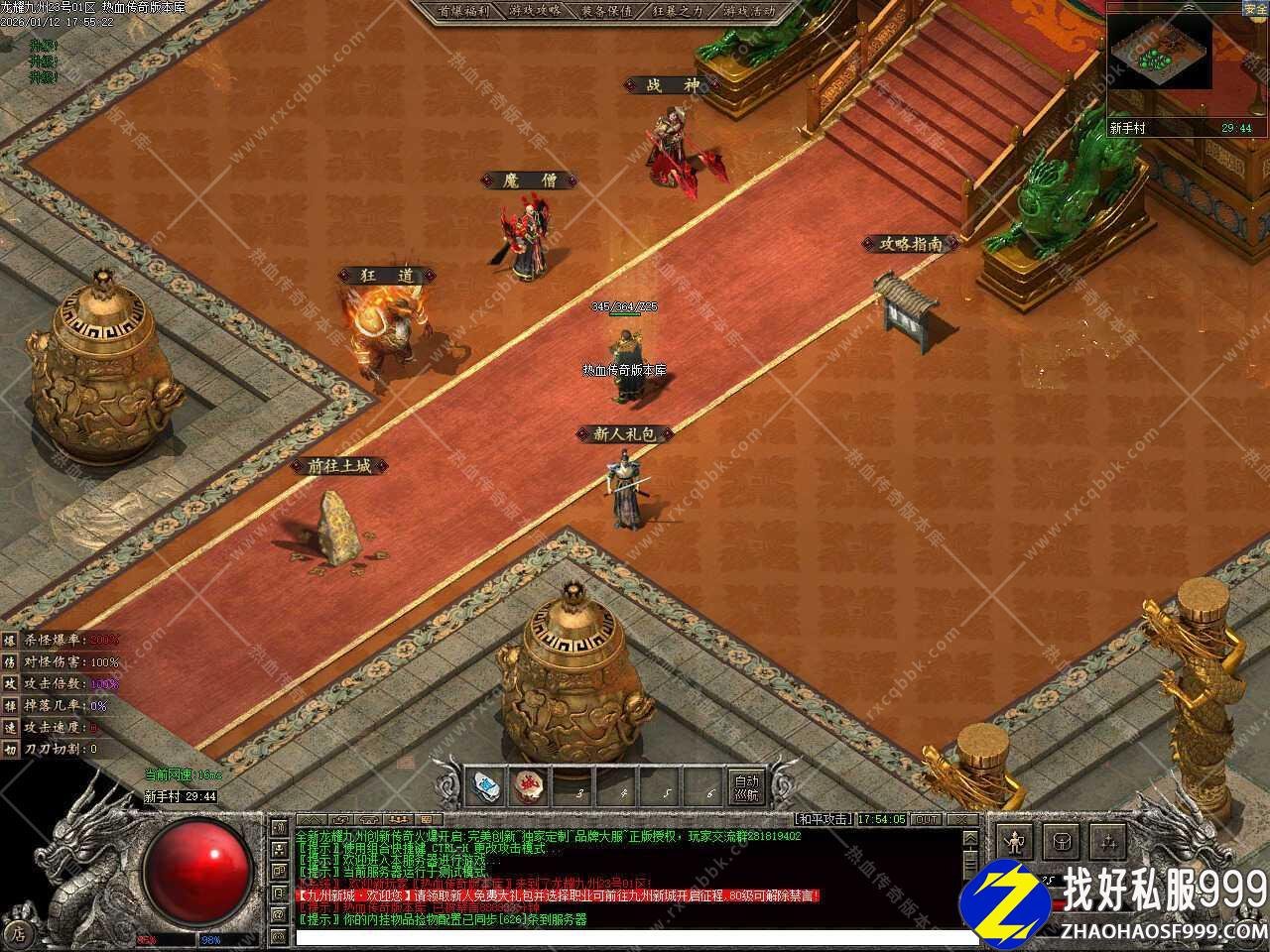 一.这个版本创建角色时默认一个职业,进游戏后在新手大殿可以选择战神、魔僧和狂道职业,每个职业在不同阶段,都有非常强势的阶段,如果抽到秘籍后每个职业秘籍保留一套,方便转职后使用,补丁13.18GB,测试建议使用17周年或20周年客户端,无需游戏兑换码,直接一键领取。