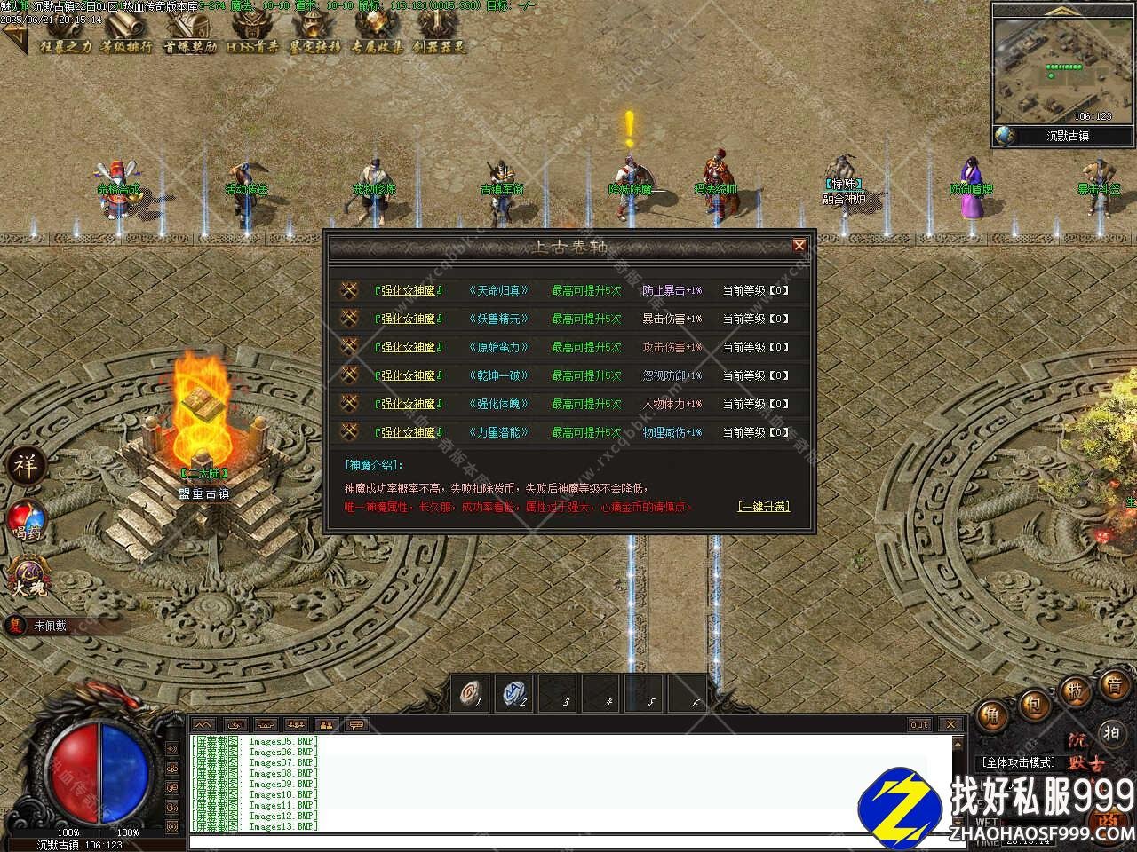 四、新增强化神魔功能,神魔成功率概率不高,失败扣除货币,失败后神魔等级不会降低,唯一神魔属性,长久服,成功率看人品,属性过于强大,舍不得金币的请慎点,如果点击次数满(500)次还未点满者可用(28888)元宝直接升满。