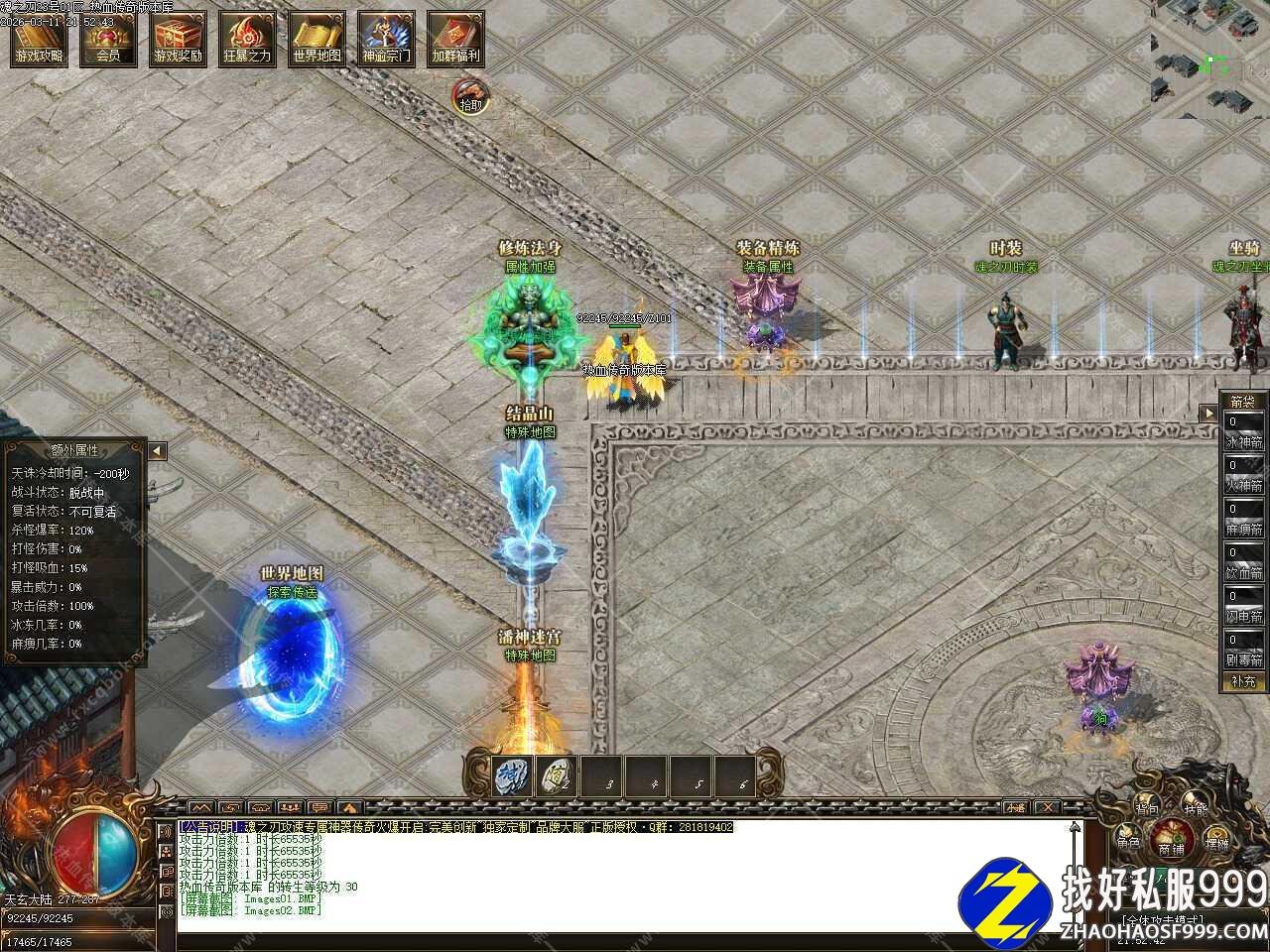 五.添加神榜争霸活动,每天18:30开启,进入通道开放5分钟,18:35关闭进入通道,进入神榜争霸地图后,自动提升[2000%]爆率,直到地图内只有最后一名玩家时即可刷新一只超级BOSS,爆率十分可观,拥有富豪称号者即可进入。