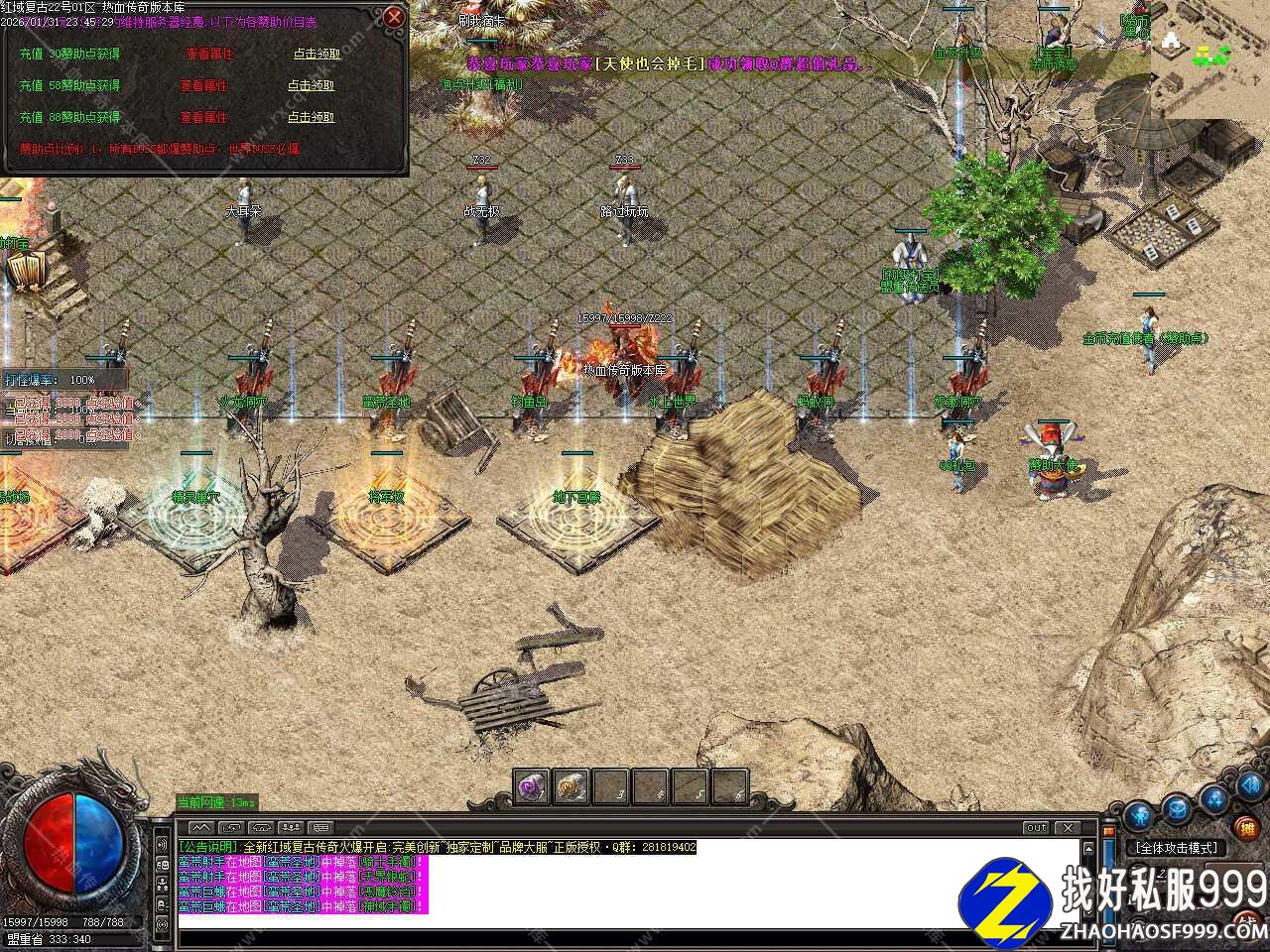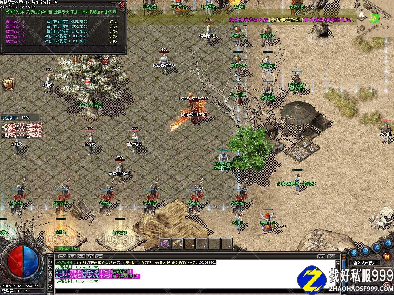 三.此版本为手动升级金币复古沉默版本,首先散人必选职业道士,然后在土城中心开启随身泡点,每秒1000经验,随后进入安全升级地图升级,弄到双倍经验之后前往各大地图找小怪或者BOSS打**手镯和**石,建议双开一个号放到安全挖矿地图挖矿,可以挖出各种材料,十分难得,三倍经验卷可与双倍经验叠加。