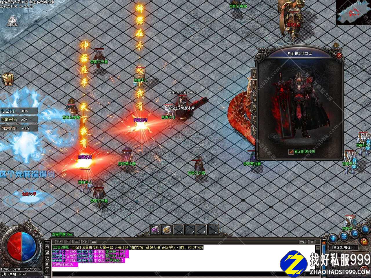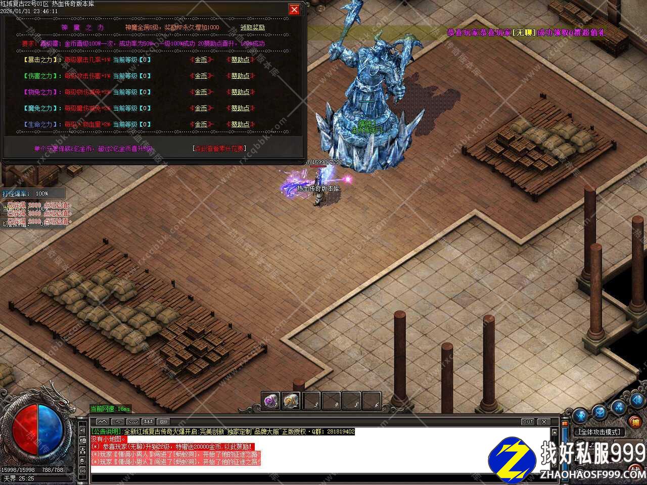 一.此版本是一个三职业沉默金币复古类型的服务端,上线自动捡物,道士带十宝,法师招狮子,战士带武兽,补丁1015.78MB,测试建议使用16周年或17周年客户端,游戏兑换码666666,里面带有ESP插件版本包和神盾插件版本包,测试时先打开控制台再启动引擎,版本带有假人功能,自动上线。