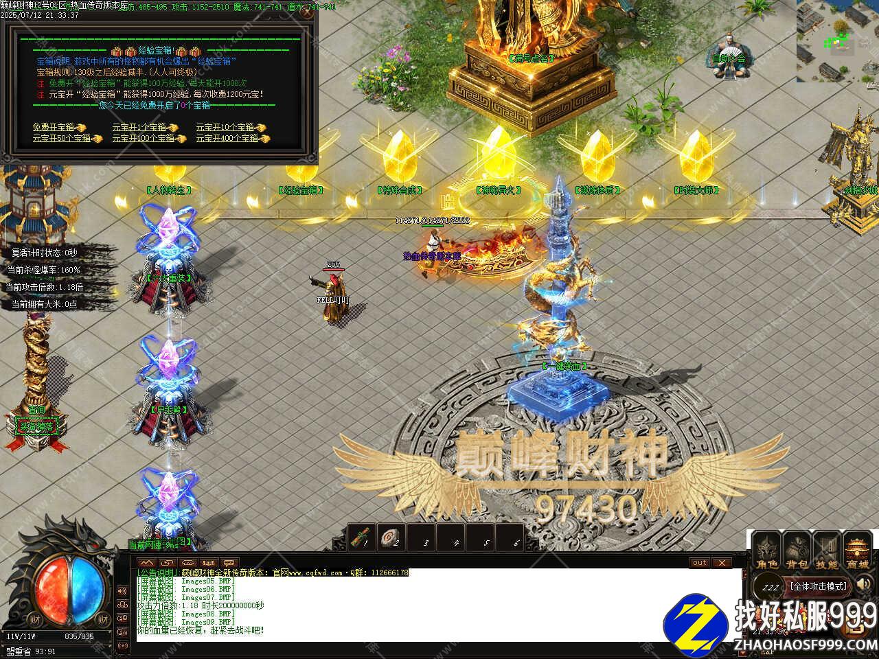 二、新增宝箱功能,游戏中所有的怪物都有机会爆出“经验宝箱”,130级之后经验减半,人人可终极,注免费开“经验宝箱”能获得100万经验,每天能开1000次,元宝开“经验宝箱”能获得1000万经验,每次收费1200元宝。
