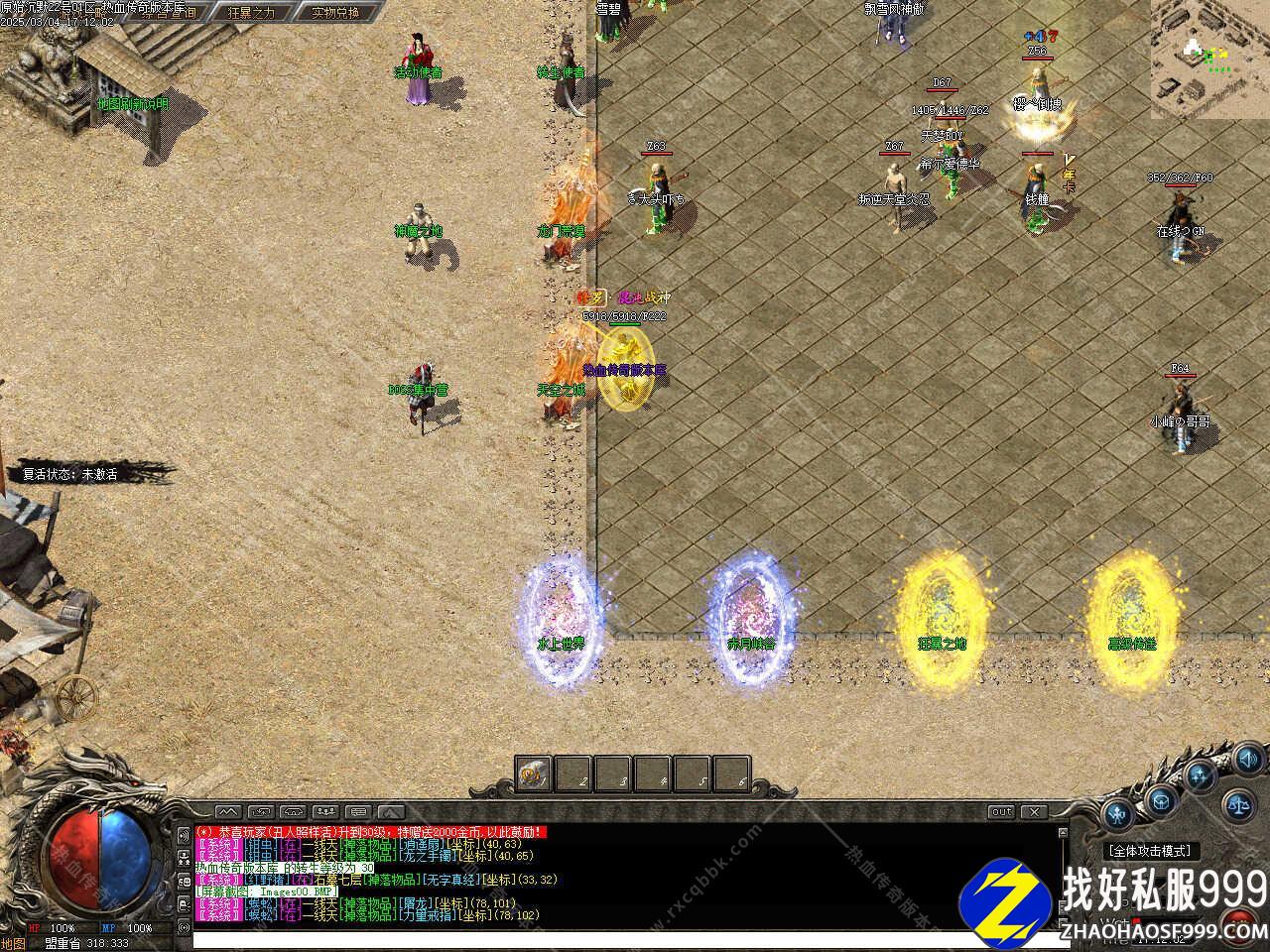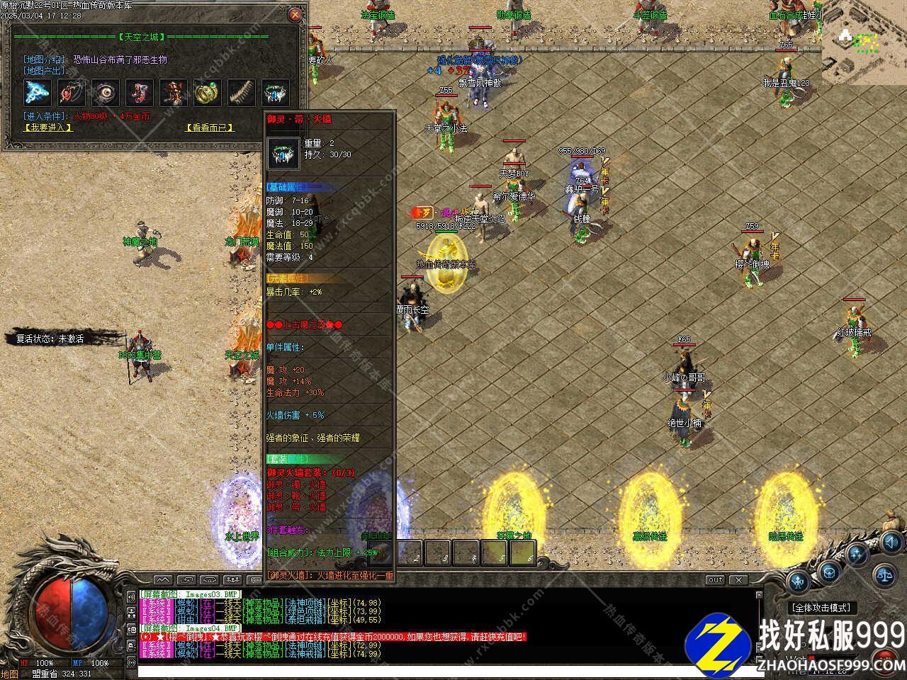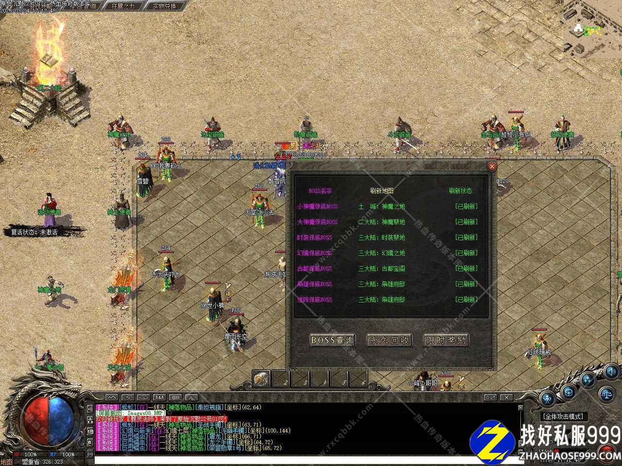 版本介绍:新增世界BOSS活动,每天10.10、16.10、22.10将会降临在苍月岛!刷新坐标:156 164,世界BOSS降临将会全服提示,几率掉落守护斩,注意:开启全服信息过滤后将无法看到刷新提示信息。 本帖最后由 传奇版本库 于 2025-3-4 20:35 编辑