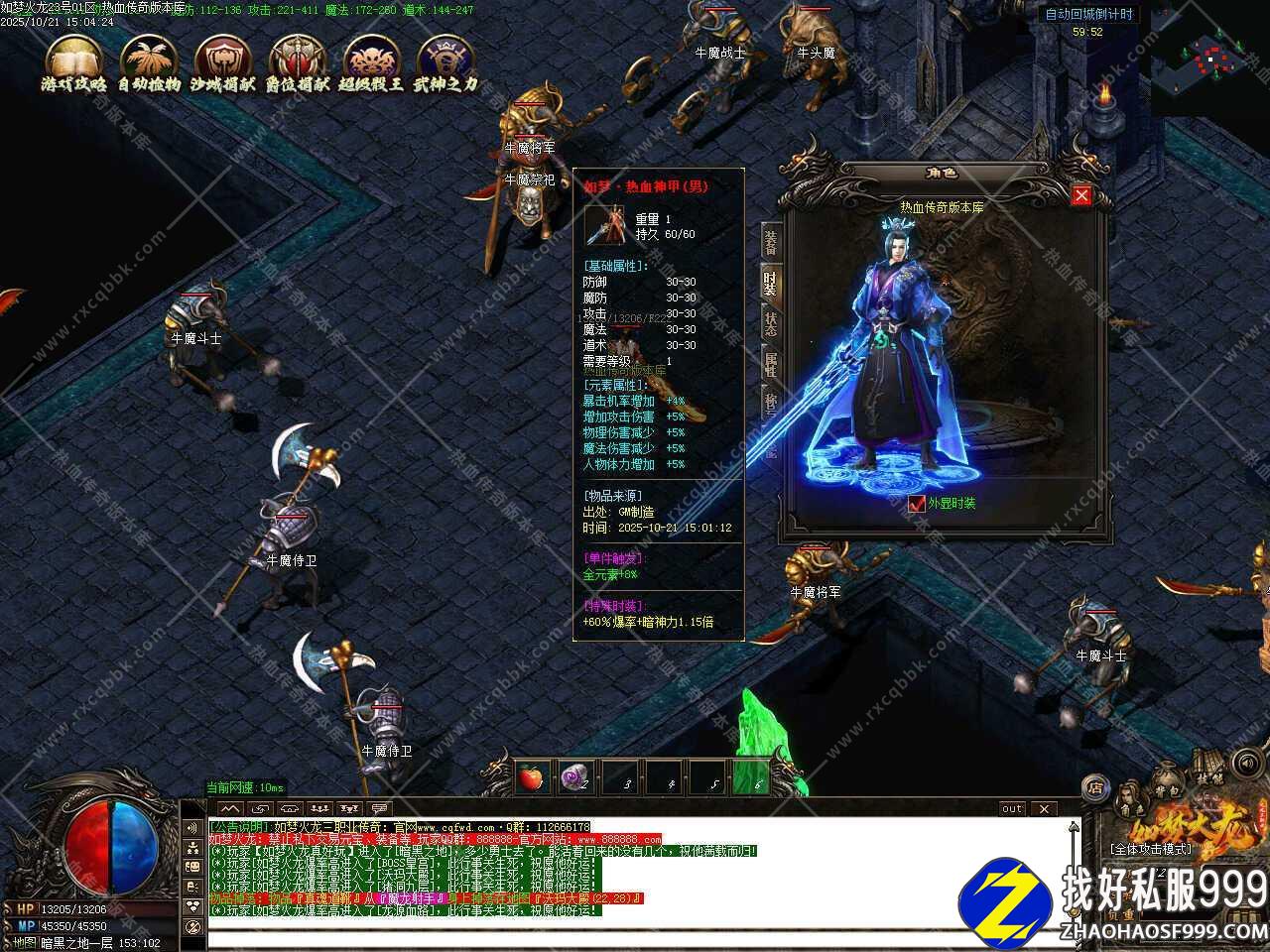 一.此zhaosf发布网服务端属于火龙类型的版本,补丁大小7.29GB,测试客户端为17周年纯净客户端,游戏兑换码666666,版本带有假人功能,自动上线,此版本使用了ESP和神盾插件,开启了大背包功能。