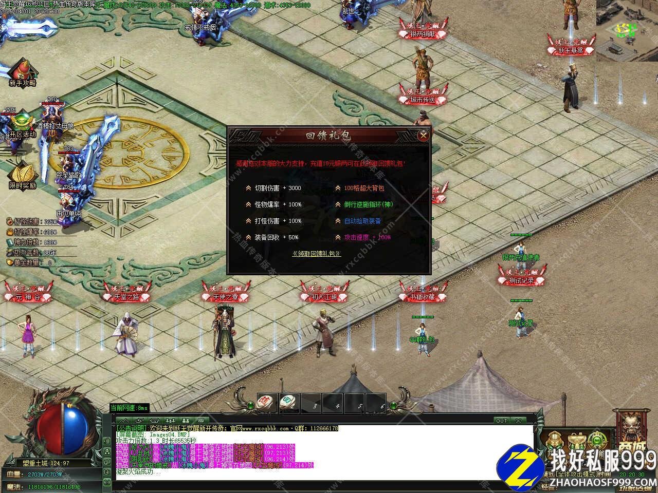 版本介绍:在盟重土城有个切割锻造合到顶级自带传送功能,背包功能服务可以用黄金兑换10万点修为丹,快速实现进高级地图打高级装备。