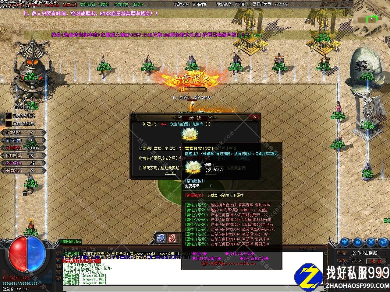 版本介绍:此传奇版本为长久中变迷失大陆类版本,新增装备N套,SSSS级装备也多,地图成千,爆率惊喜多多。